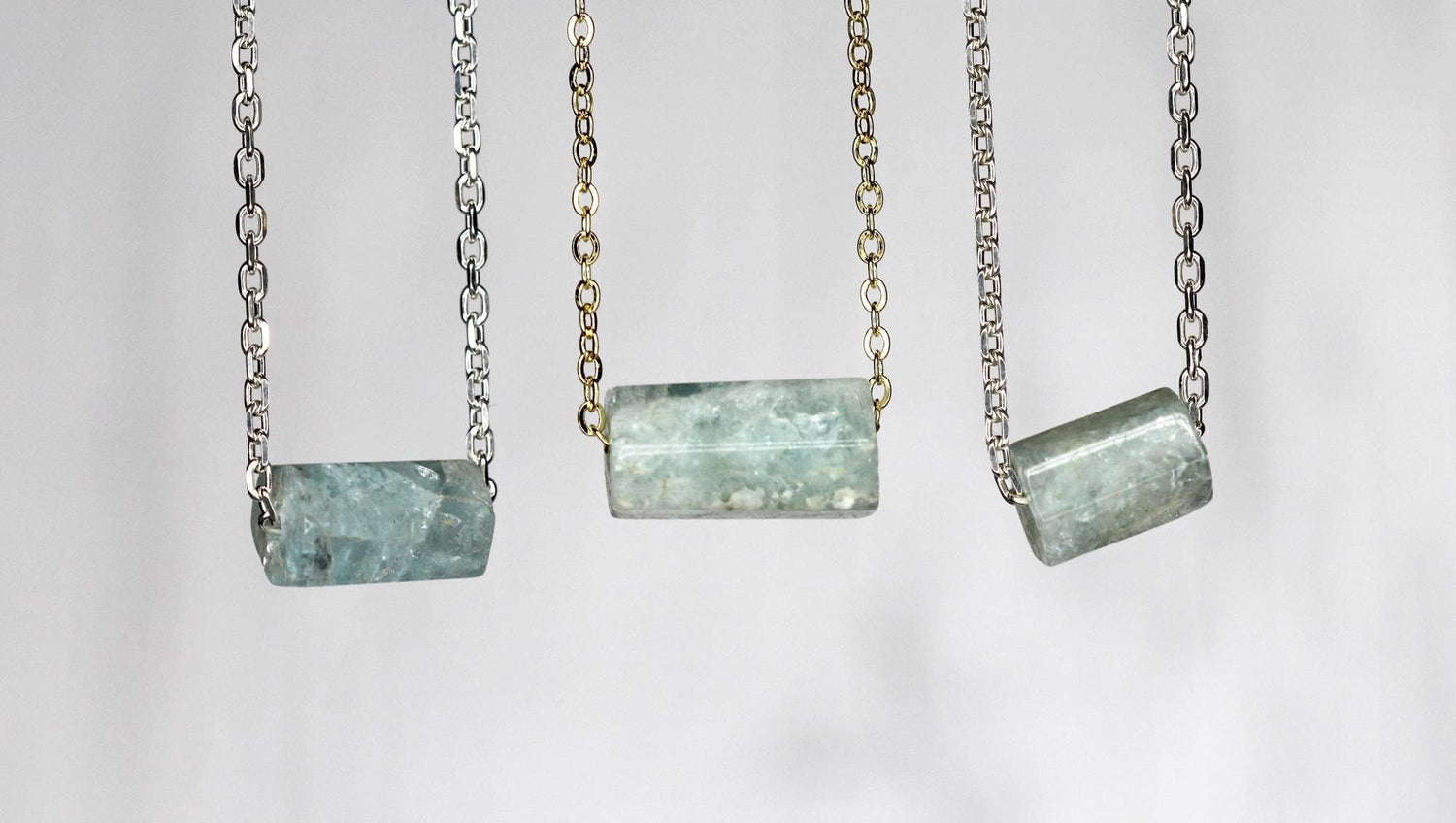 Aquamarine Necklace - Beaded Gemstone - Sterling Silver Jewelry - Minimalist Jewelry - Crystal Necklace