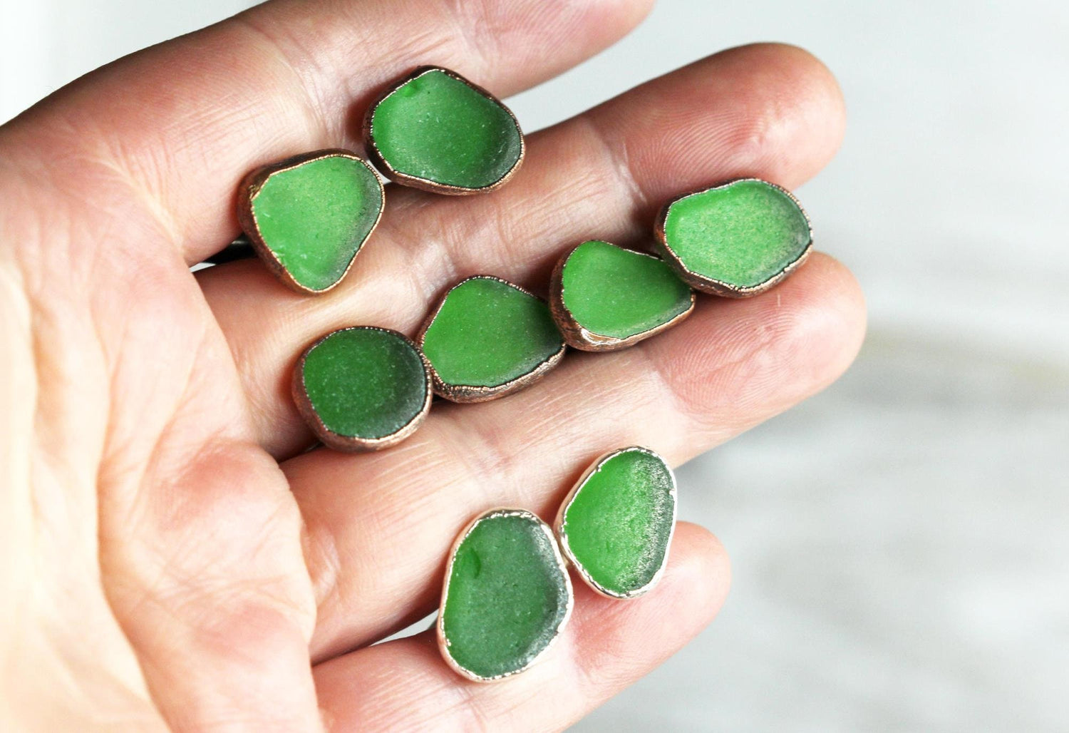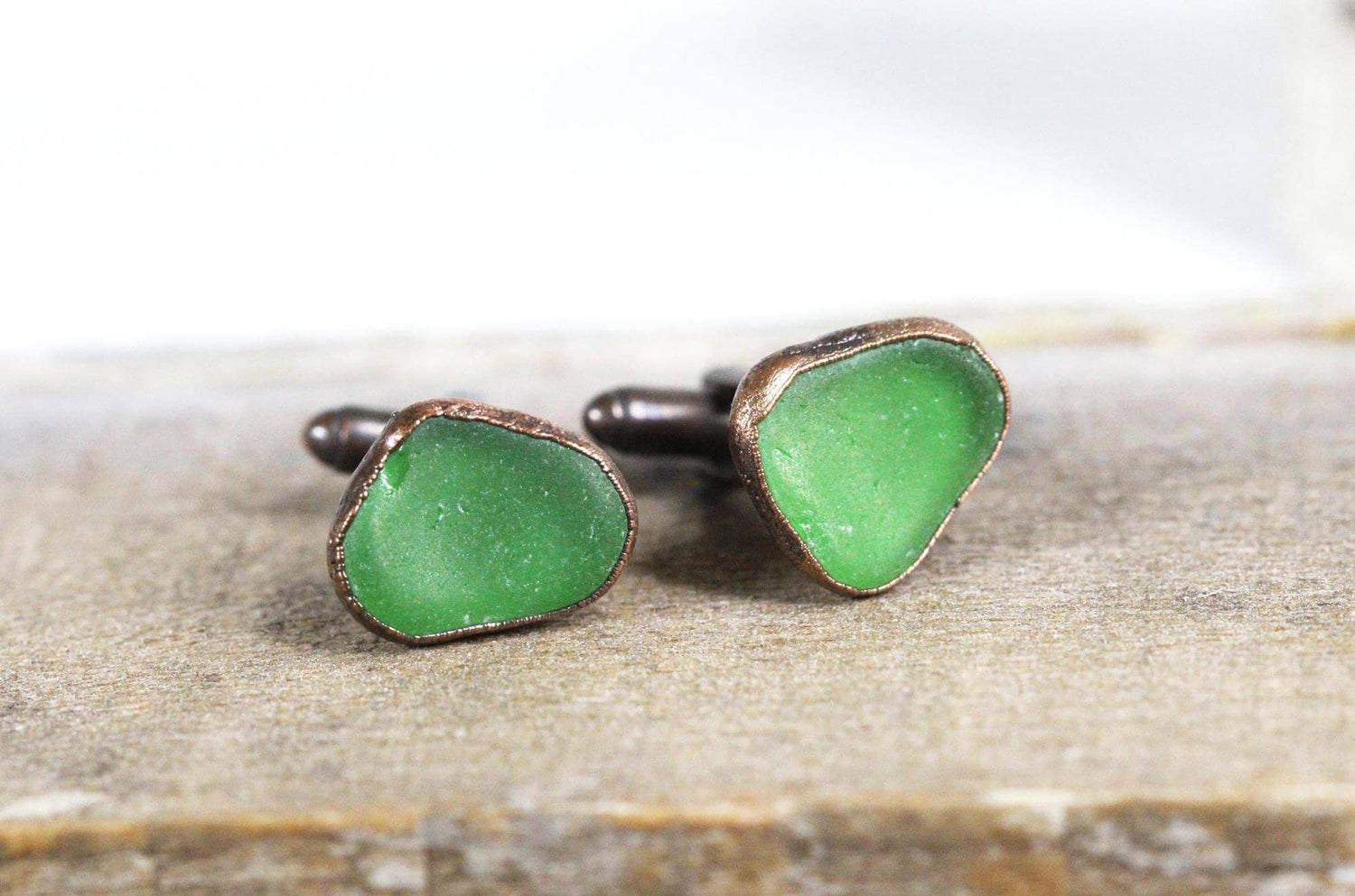 *ATTENTION US CUSTOMERS, THIS SHIPS TARIFF FREE* Emerald green beach glass cufflinks in copper or fine silver. These exact pairs have sold, please allow for variations in size and color.