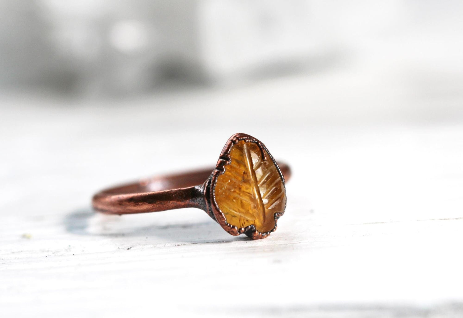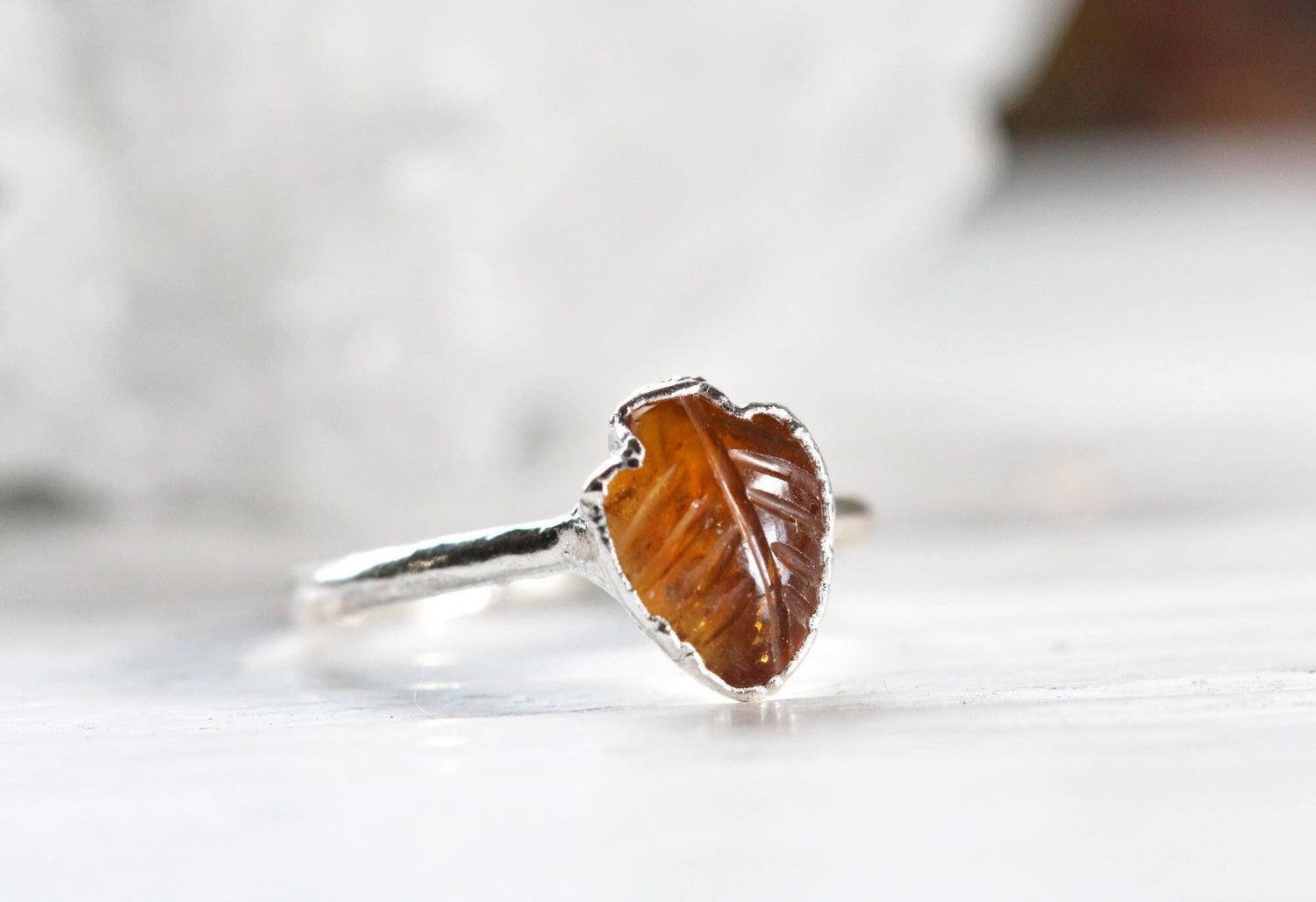 Citrine Leaf Ring - Carved Stone - Crystal Ring - November Birthstone Jewelry