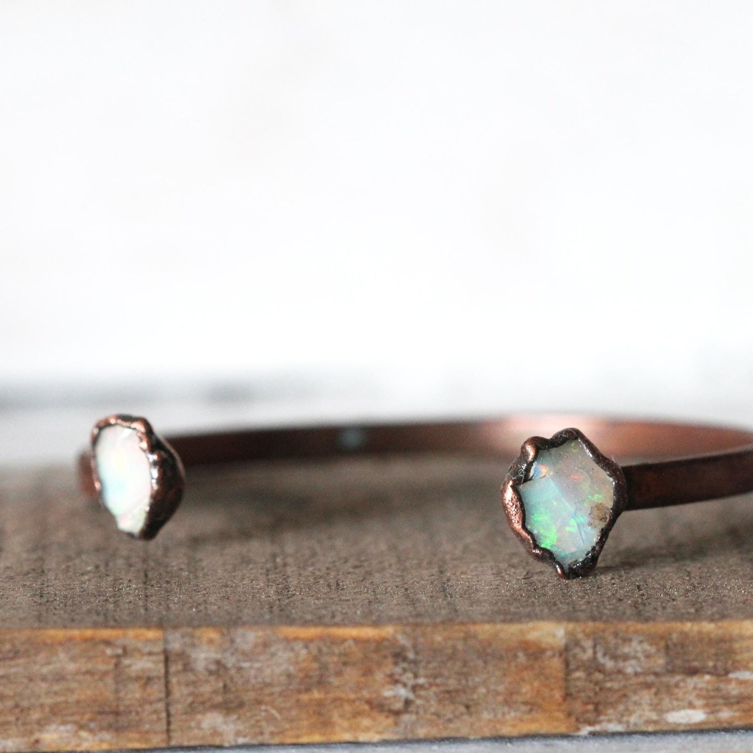 Opal Bracelet - Open Copper Cuff - Ethiopian Opal - Double Stone Bracelet