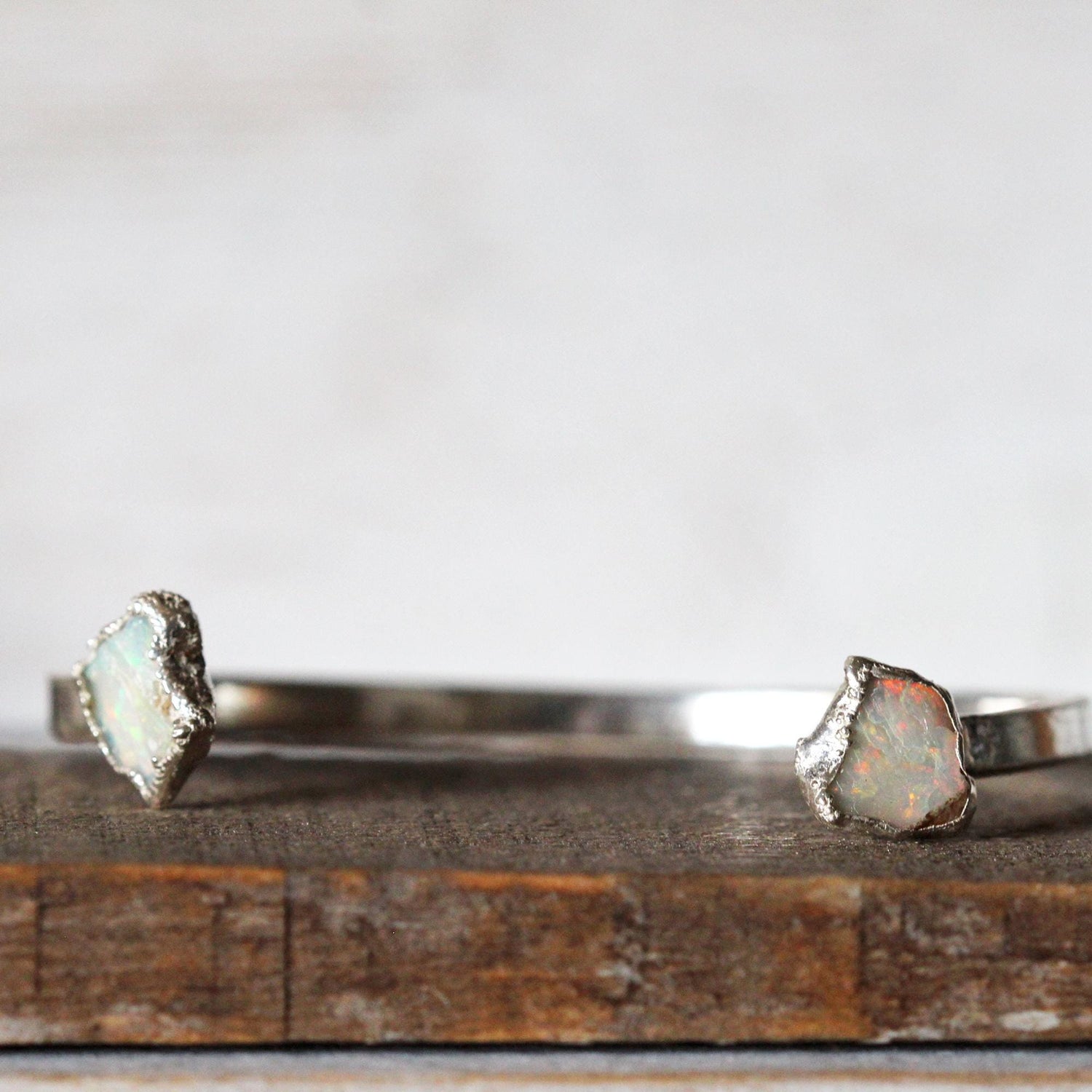 *ATTENTION US CUSTOMERS, THIS SHIPS TARIFF FREE* An open Ethiopian opal cuff in your choice of fine silver or copper. The circumference is approximately 2.5 inches in width and is adjustable with care. Opal is October's birthstone - Sign is Libra *Most of the opal crystals mined in Ethiopia are from the northern region of Welo in the highlands. Mining is carried at an altitude of about 2500m—3000m above sea level or 8200 to 9800 feet above sea level. *Ethiopian Opal is associated with enhancing intuition and spiritual insight.