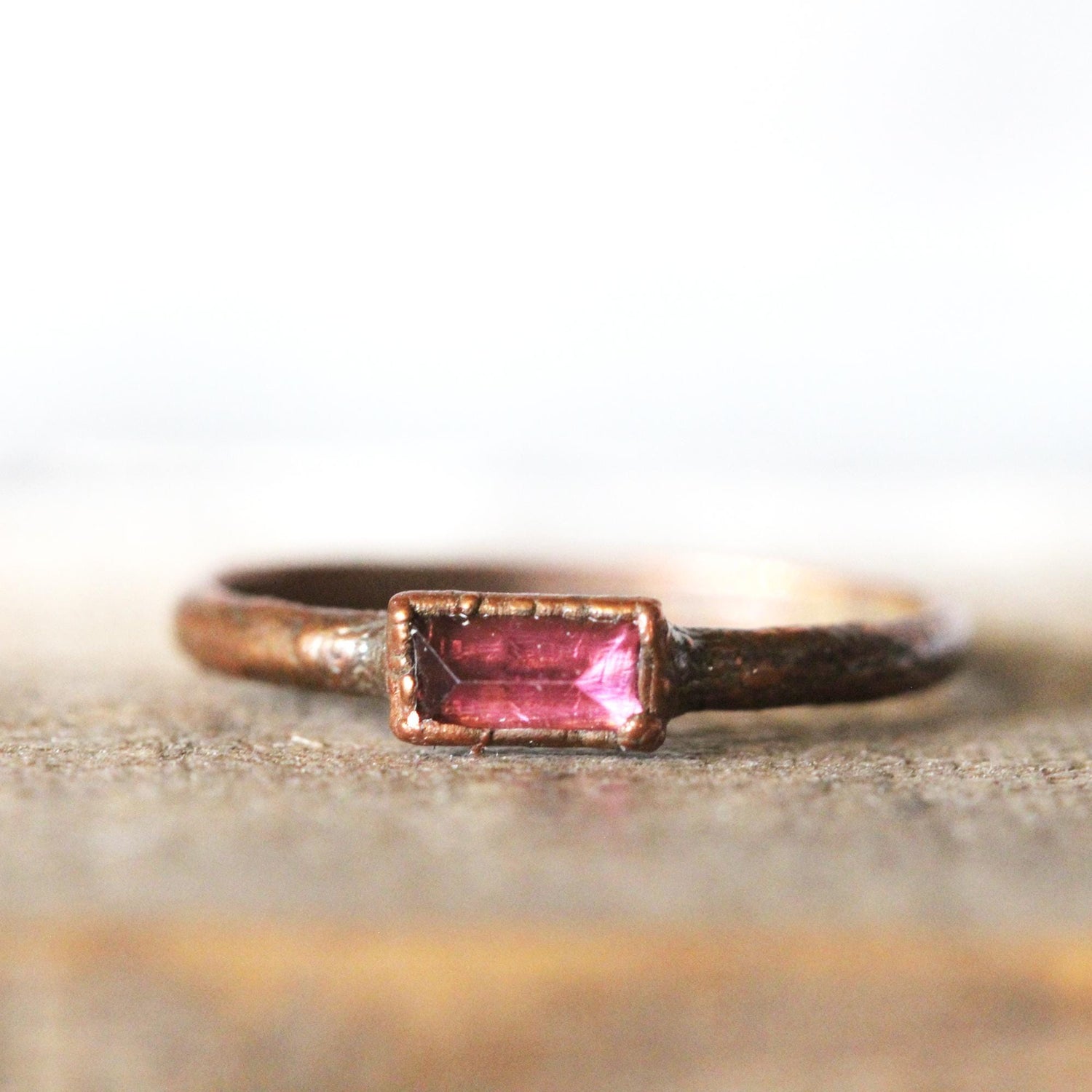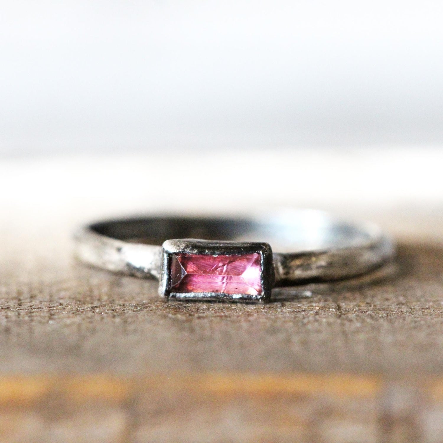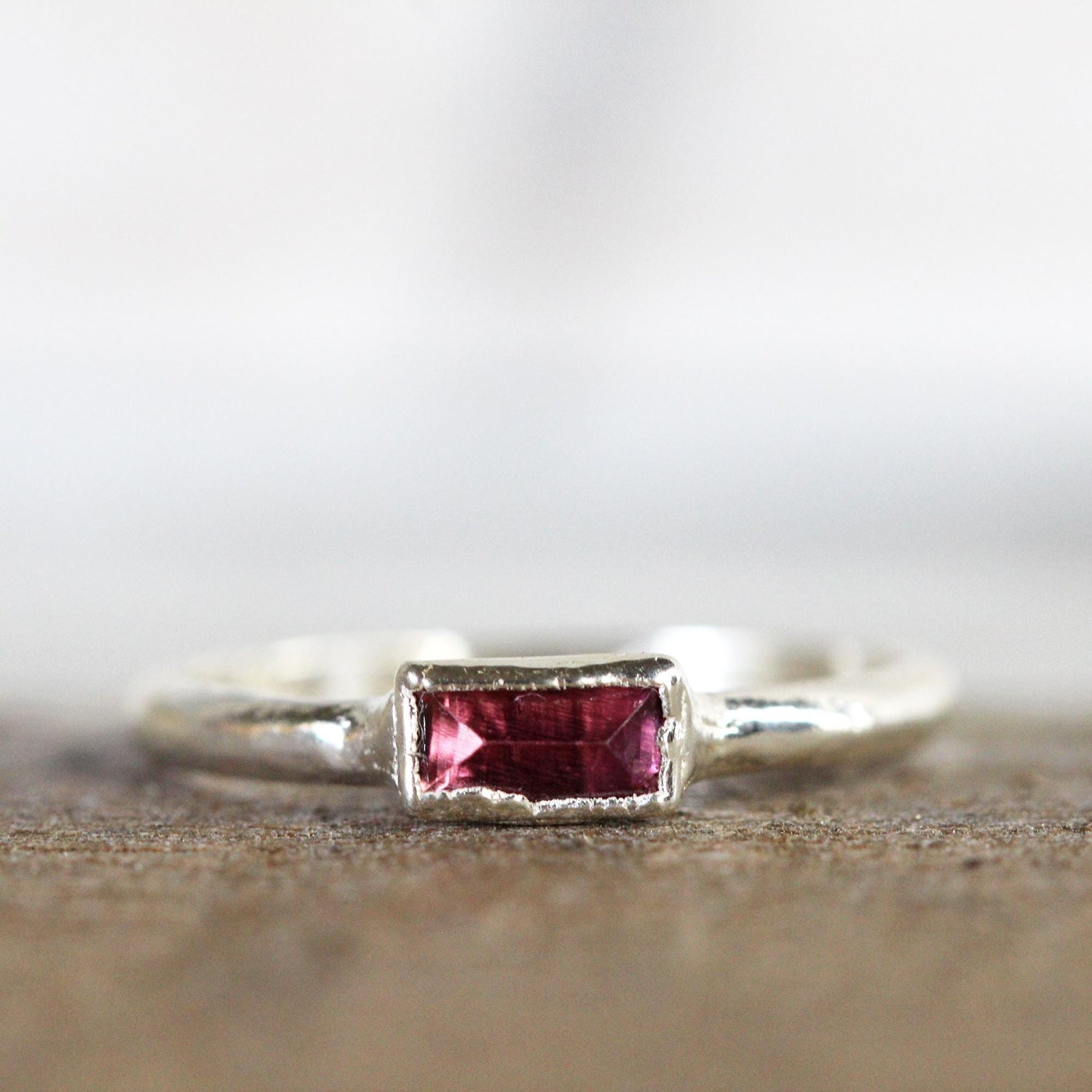 Pink Tourmaline Ring - October Birthstone - Rectangular Stone Stacker