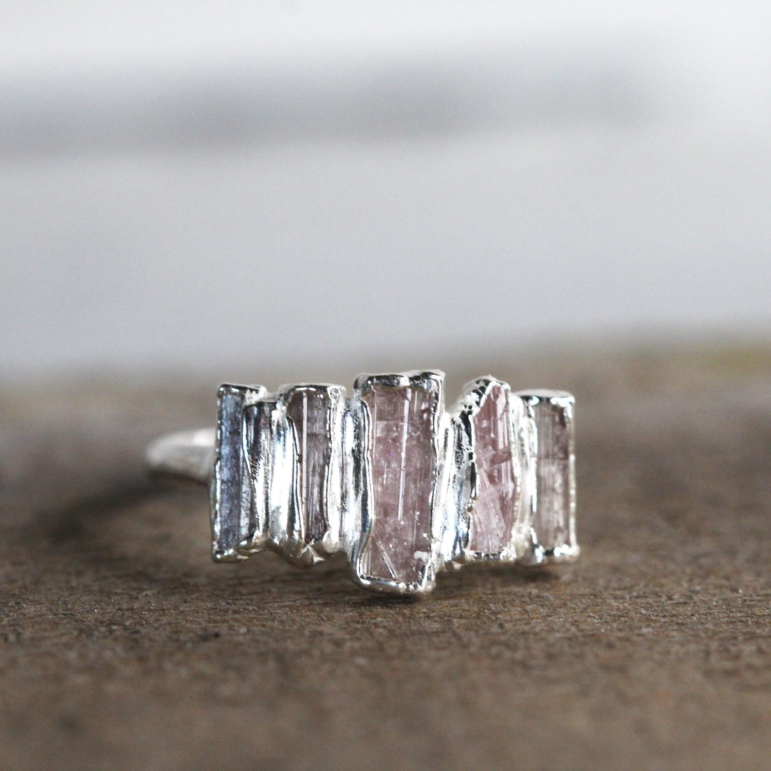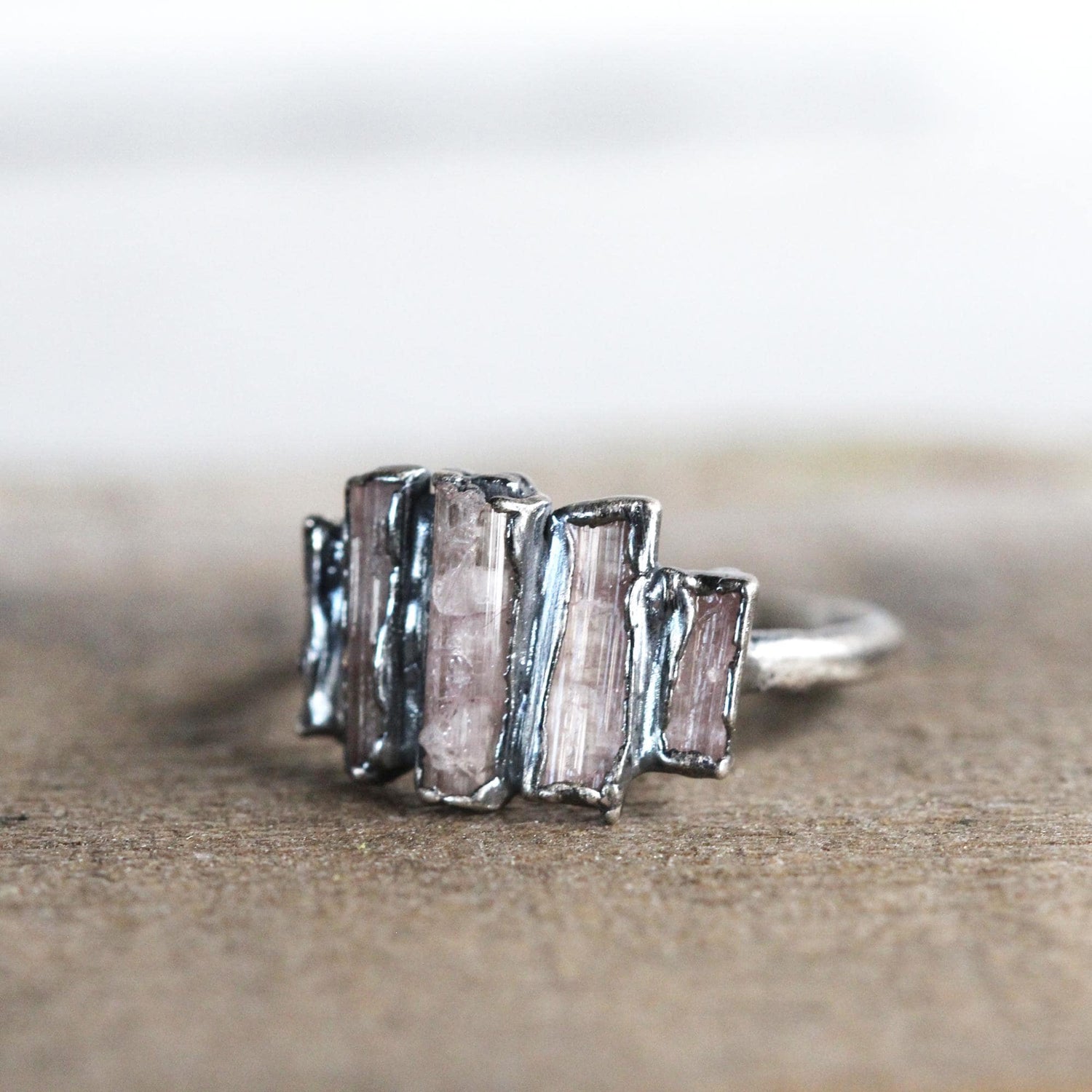 Pink Tourmaline Ring - Raw Crystals - Cocktail Ring