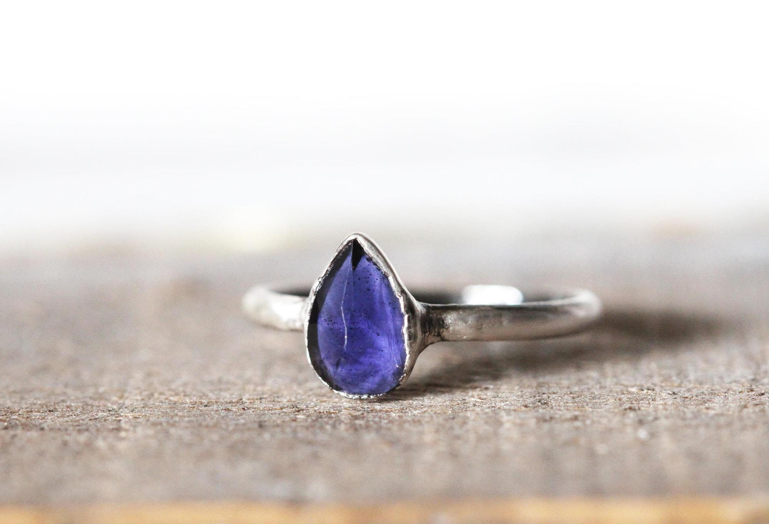 Polished Iolite Ring - Blue Crystal - Faceted Stone Ring