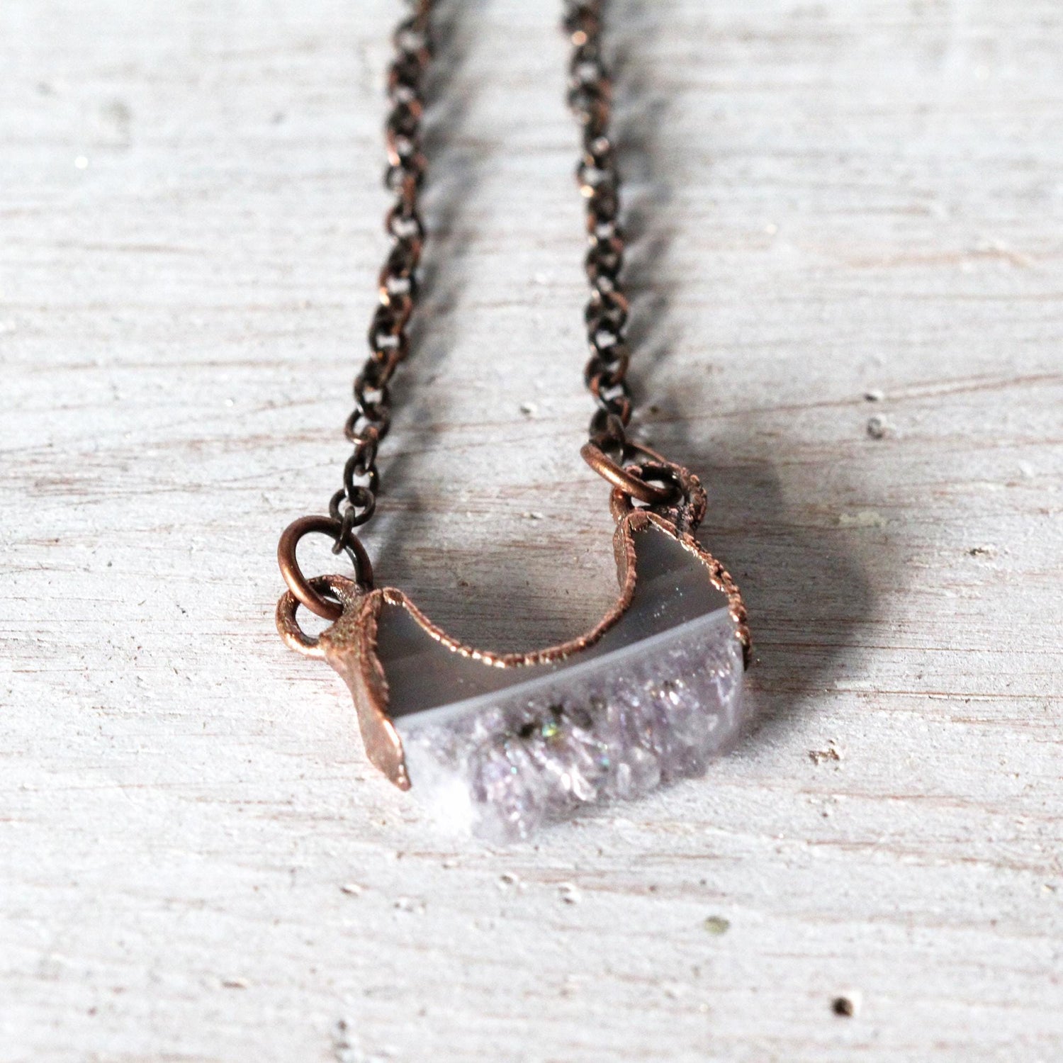 Raw Amethyst Necklace - Crystal Pendant - Half Moon Pendant - Druzy Crystal - Crescent Moon