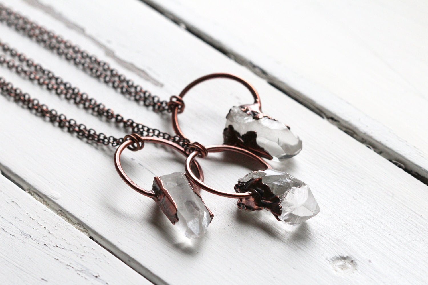 Raw Crystal Necklace - Quartz Crystal Pendant - Electroformed Crystal Jewelry