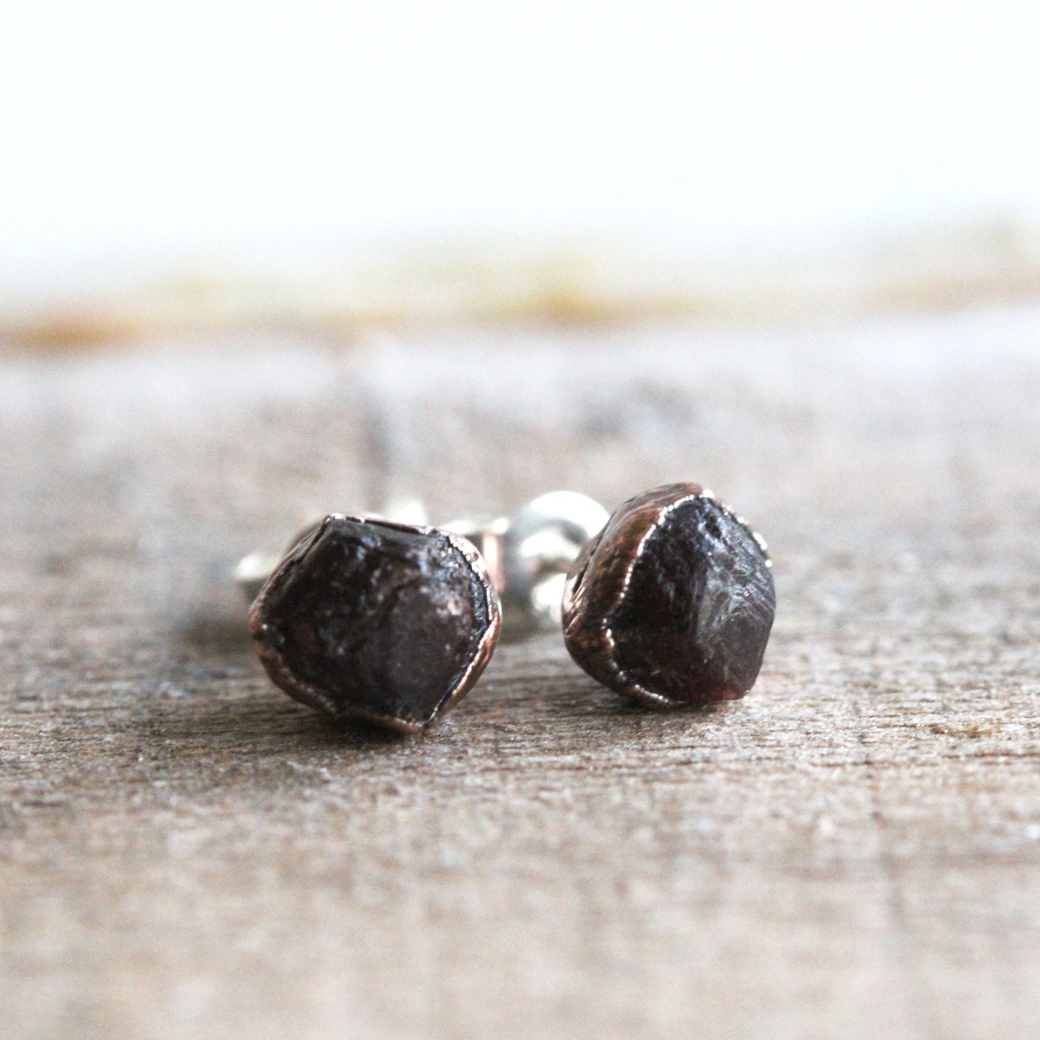 Raw Garnet Earrings - Raw Stone Posts - Sterling Silver Stud Earrings - January Birthstone
