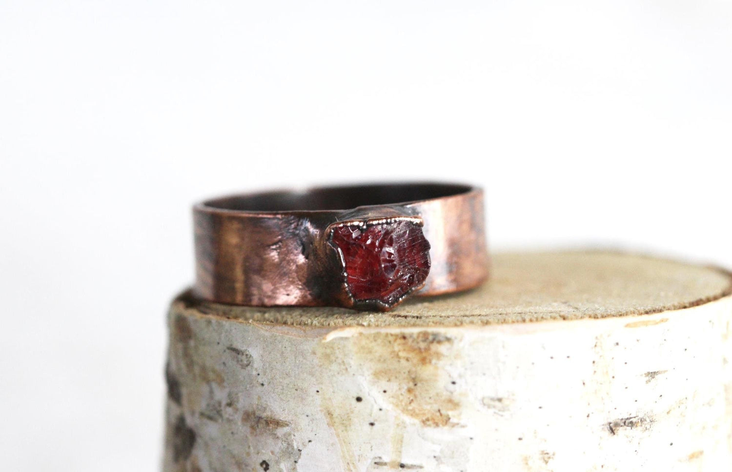 Raw Garnet Ring - Men's Jewelry - Wide Band Garnet Ring - January Birthstone