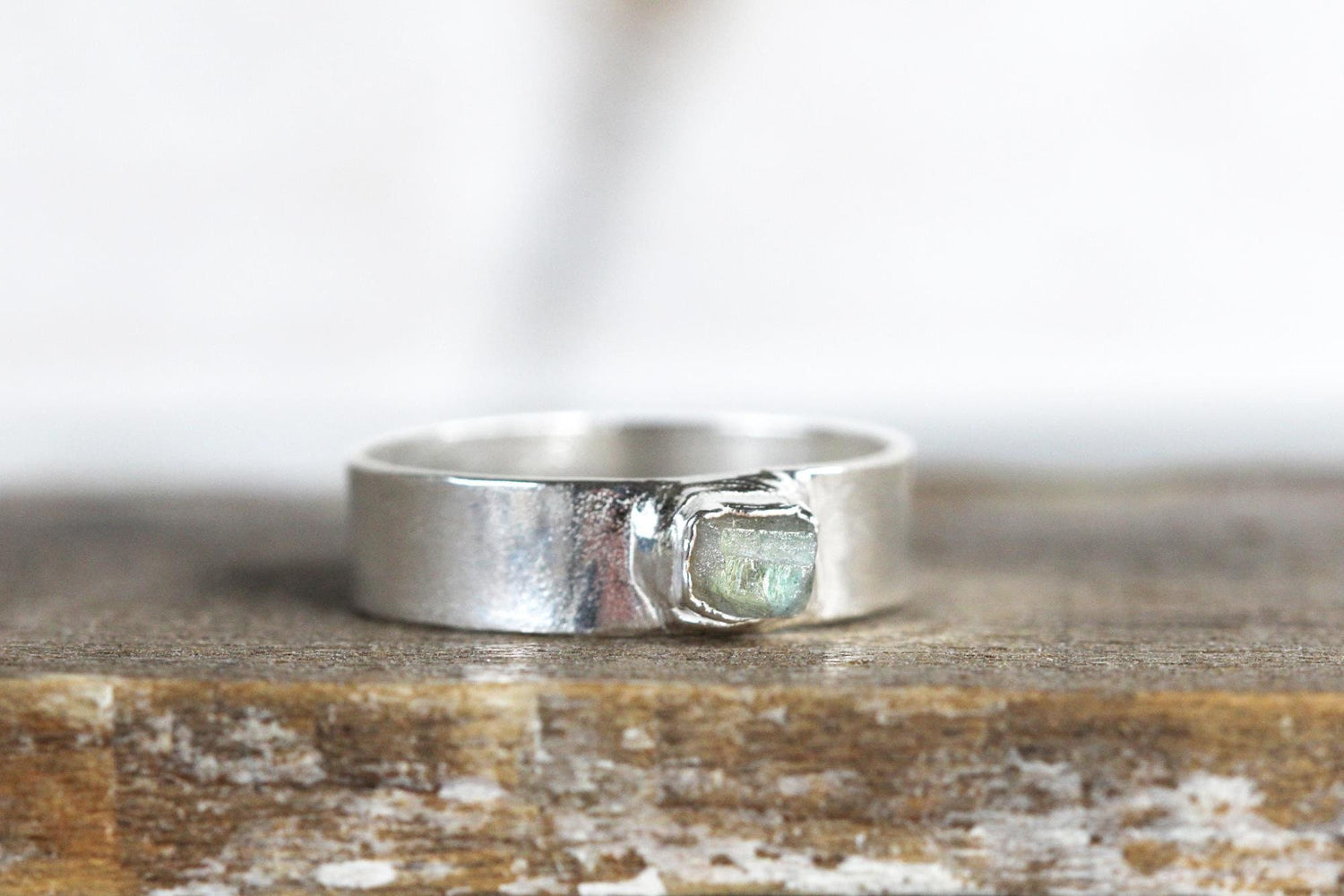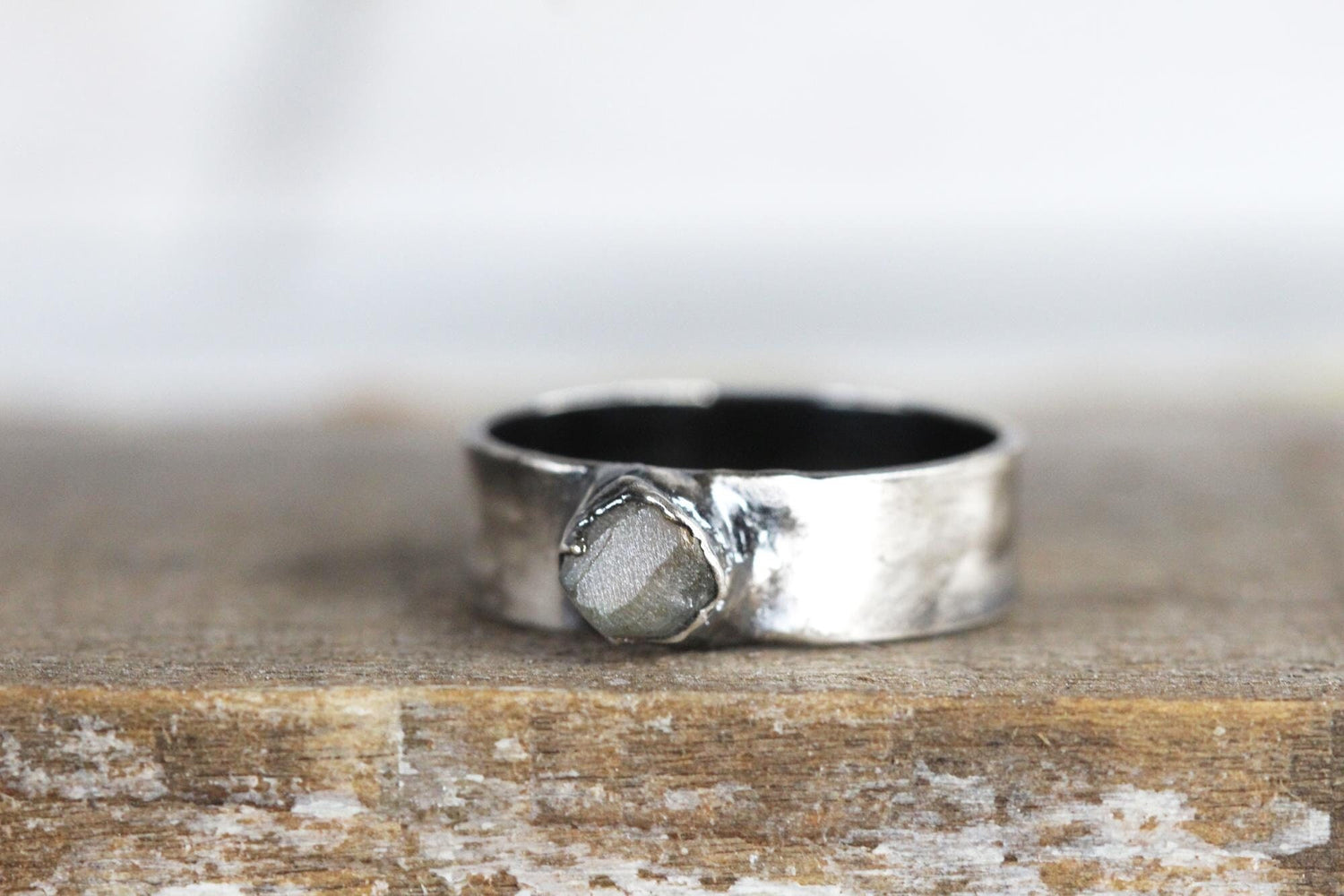 Raw Labradorite Ring - Men's Stone Jewelry - Wide Band Ring - Unisex