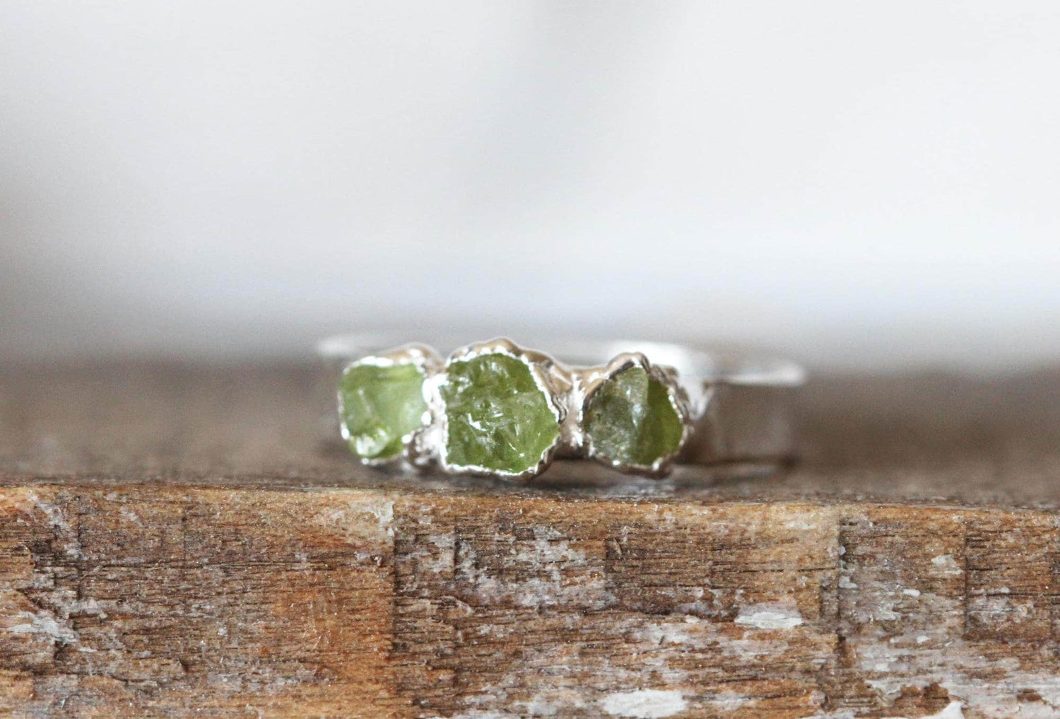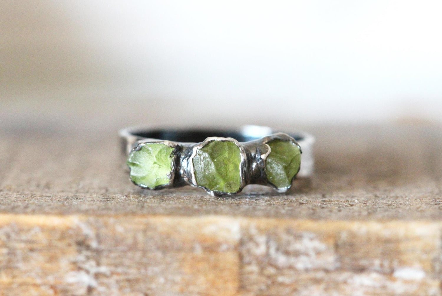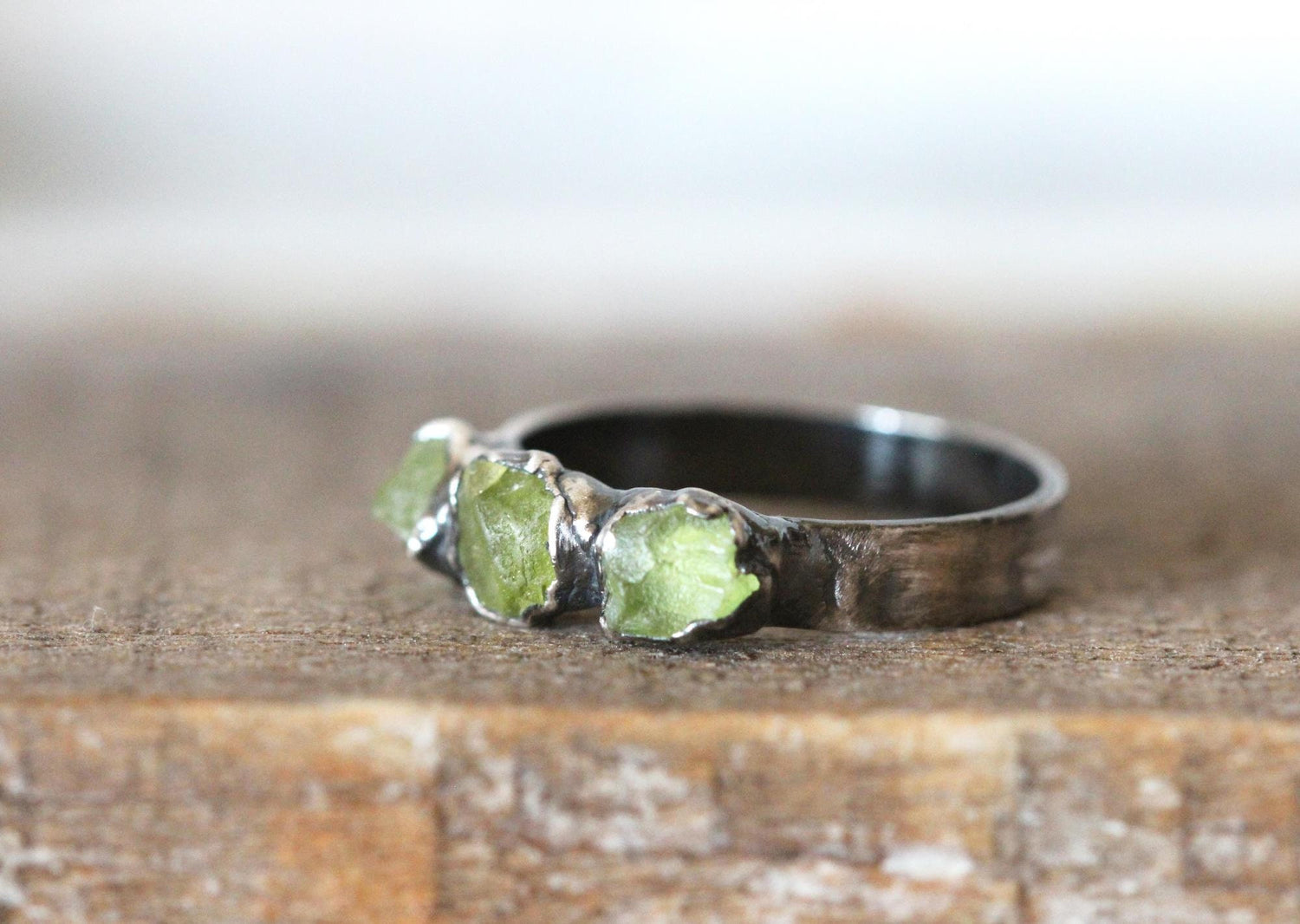 Raw Peridot Ring - August Birthstone - Wide Band - Multi Stone Ring