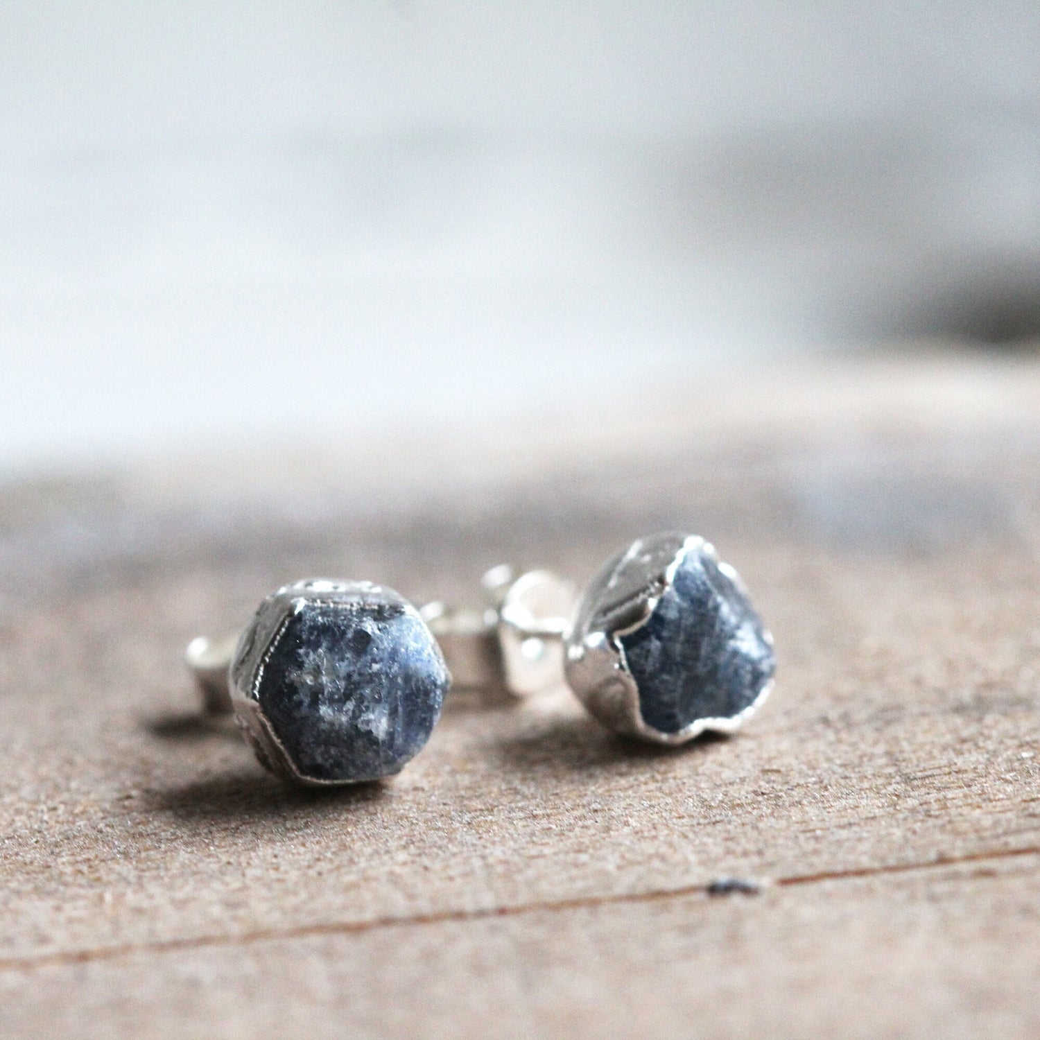 Raw Sapphire Earrings - September Birthstone Jewelry - Sterling Silver Earrings - Rough Stone Studs - Crystal Earrings