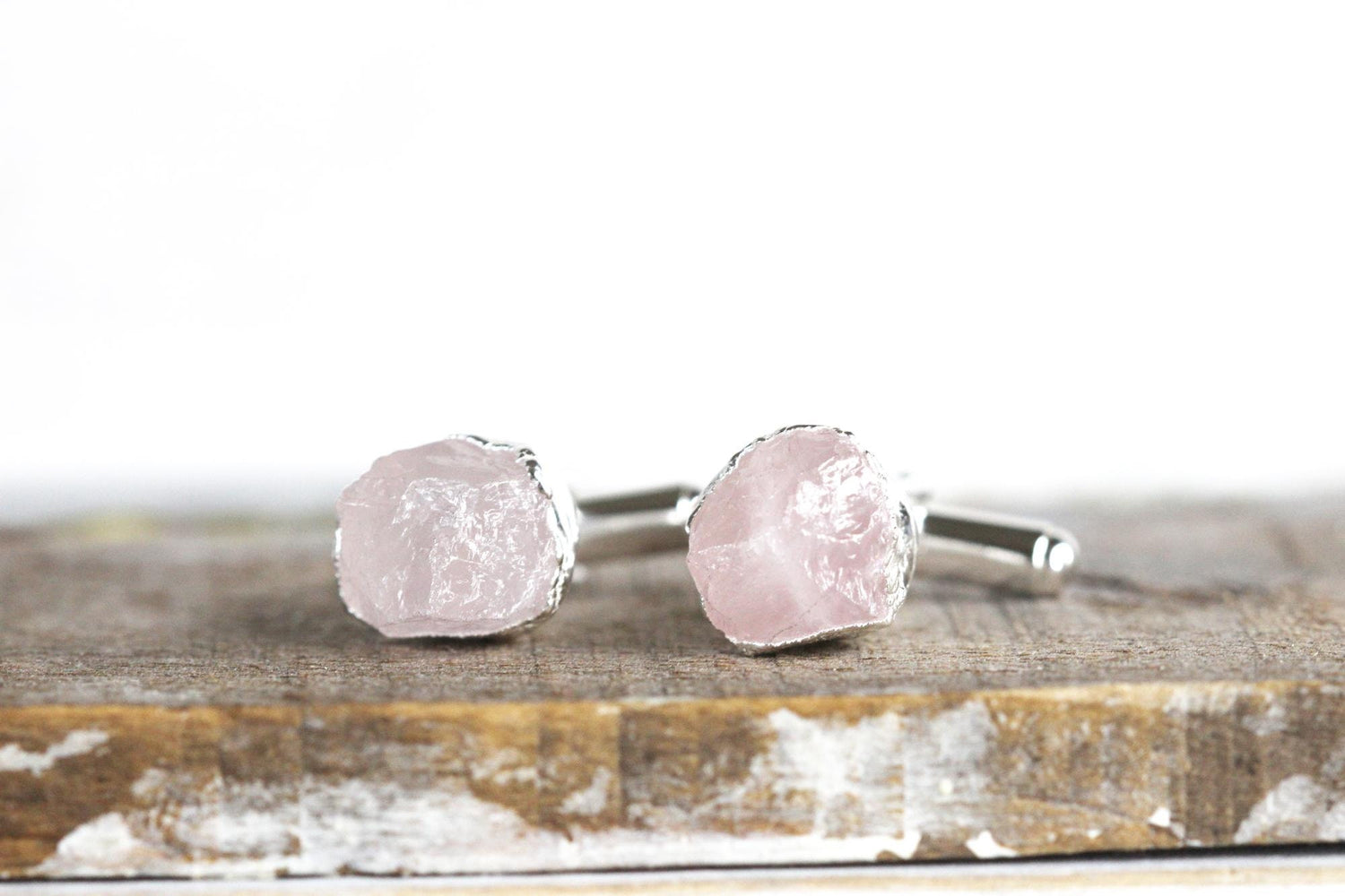 Raw Stone Cuff Links - Groomsmen Gift - Rose Quartz Cufflinks - Graduation Gift