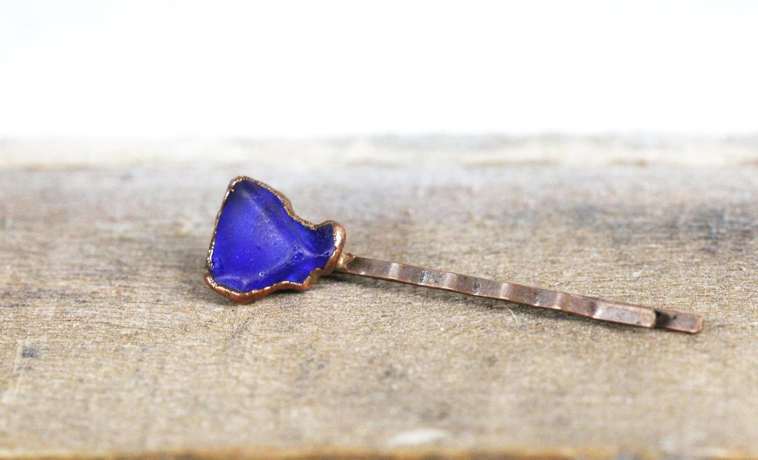 *ATTENTION US CUSTOMERS, THIS SHIPS TARIFF FREE* Cobalt blue beach glass set on copper or silver bobby pins. ***this listing is for a single pin unless purchasing a set***
