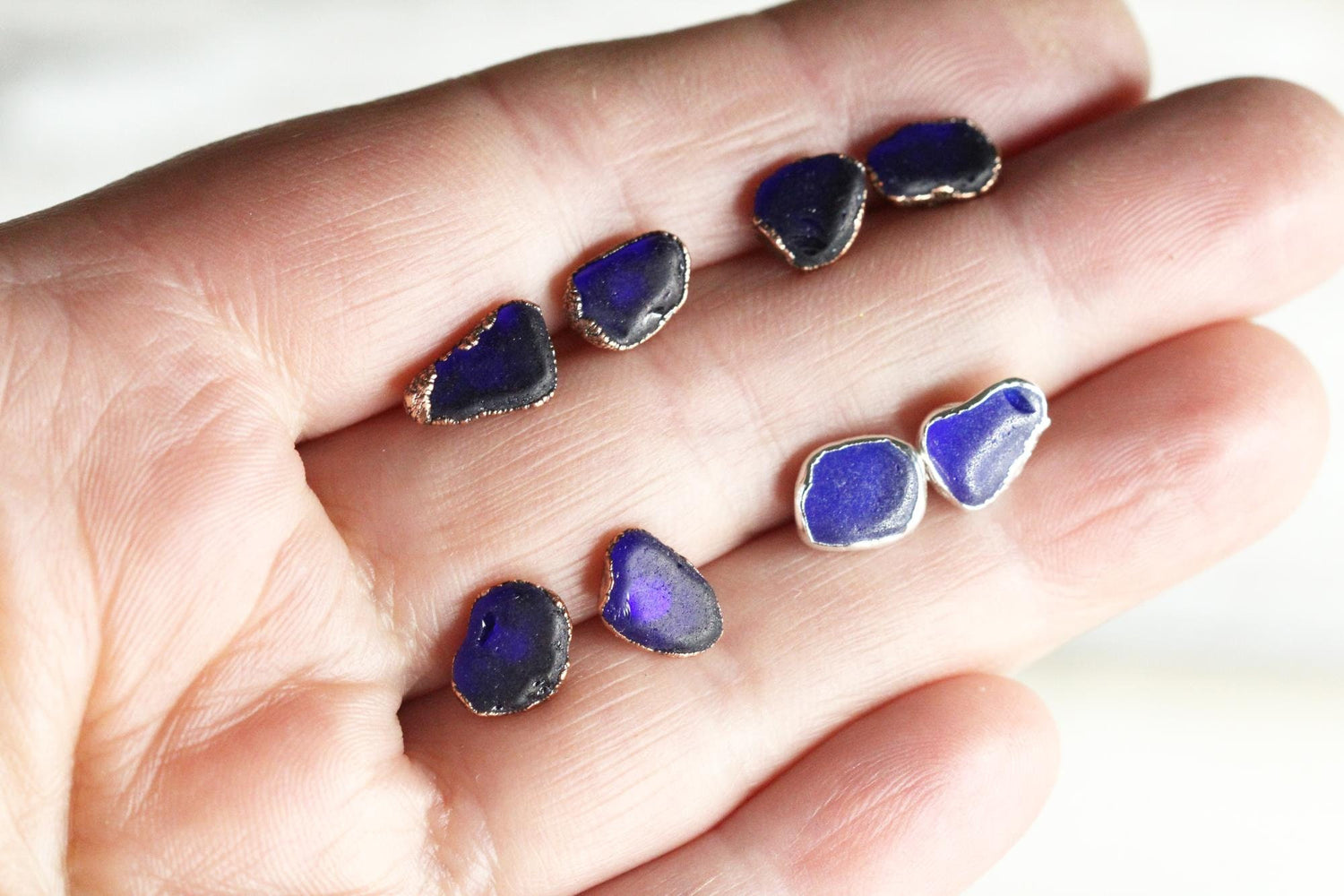 *ATTENTION US CUSTOMERS, THIS SHIPS TARIFF FREE* Sapphire blue sea glass in your choice of copper or fine silver- both options come with a sterling silver backing. Please allow for differences in sizes and colors of glass.