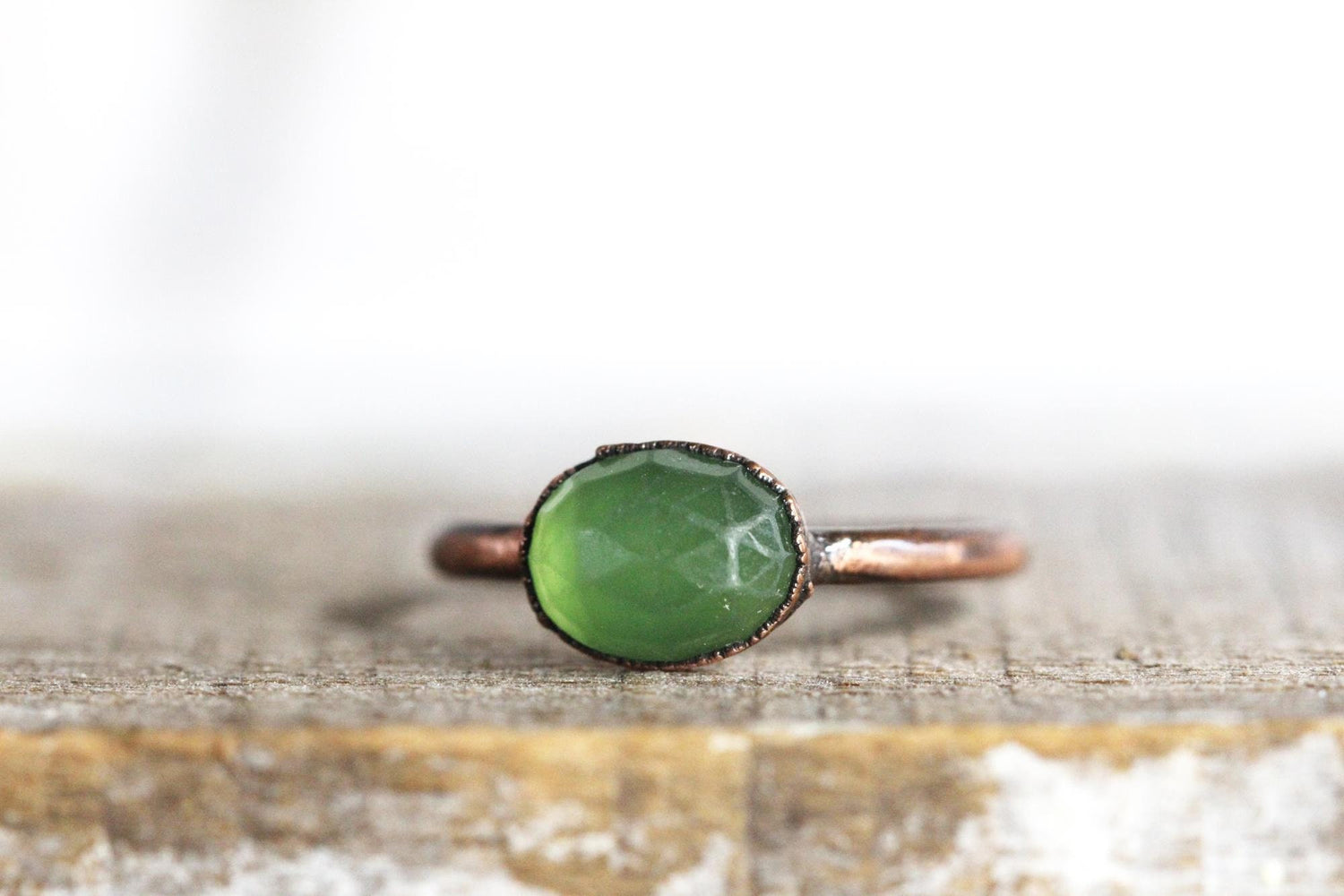 Serpentine Ring - Faceted Green Stone - Stacking Ring
