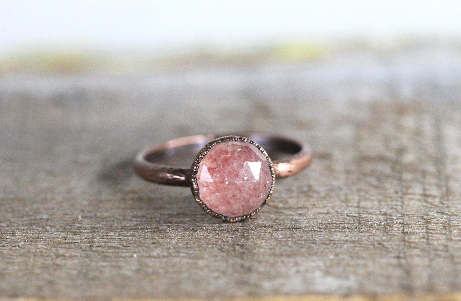 Strawberry Quartz Ring - Round Faceted Crystal - Gold Plated Jewelry