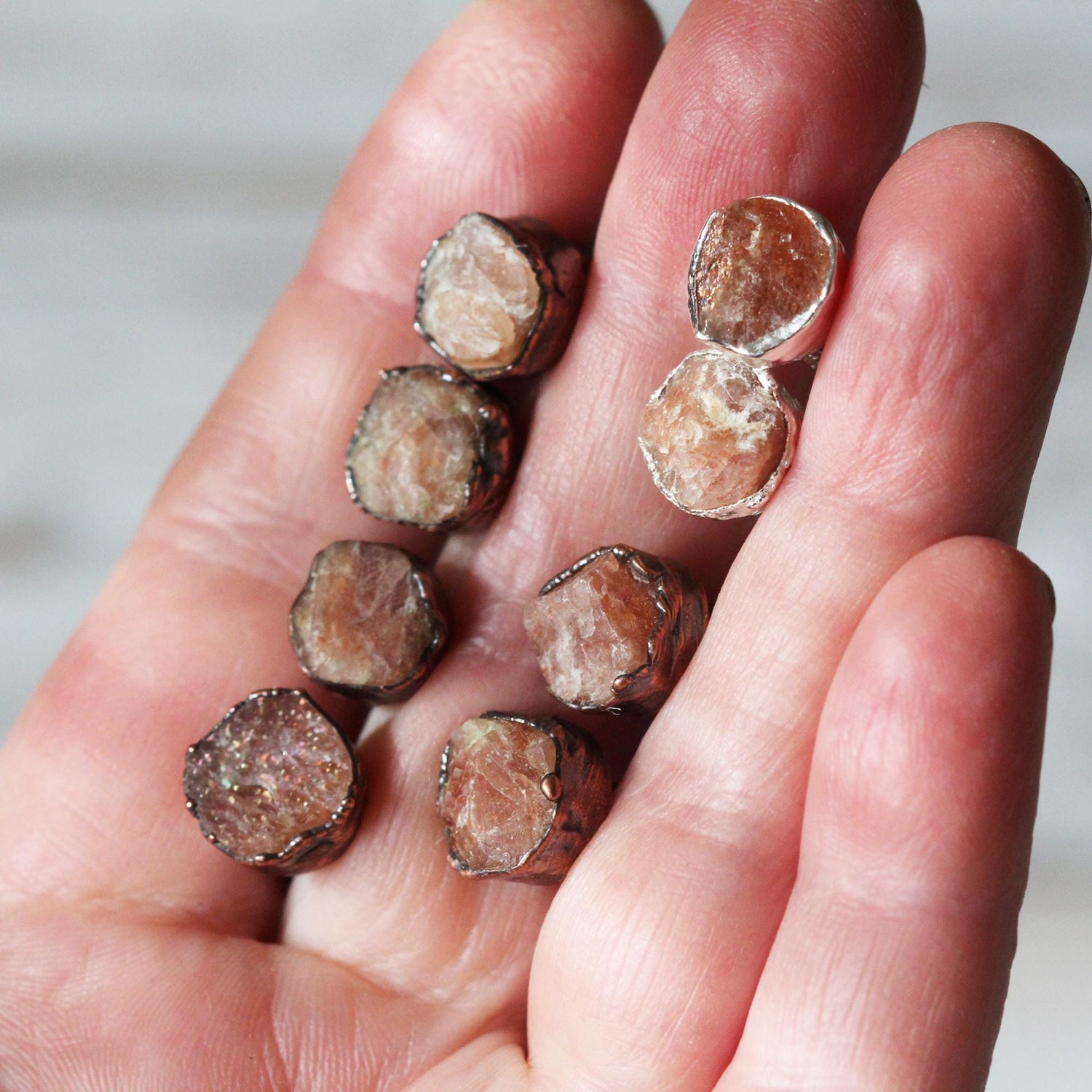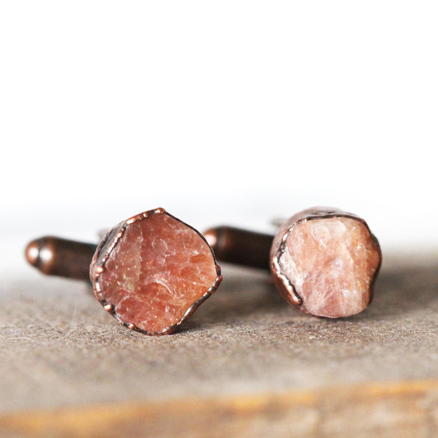 *ATTENTION US CUSTOMERS, THIS SHIPS TARIFF FREE* Raw sunstone cufflinks in copper or fine silver. These exact pairs have sold, please allow for variations in size and color.