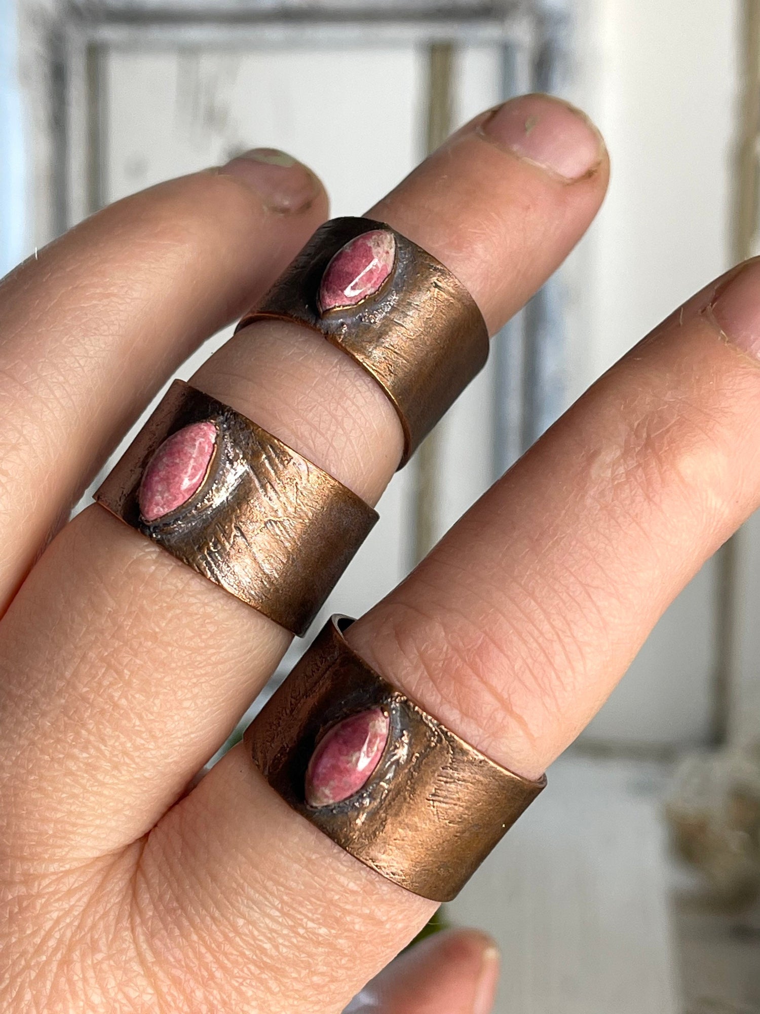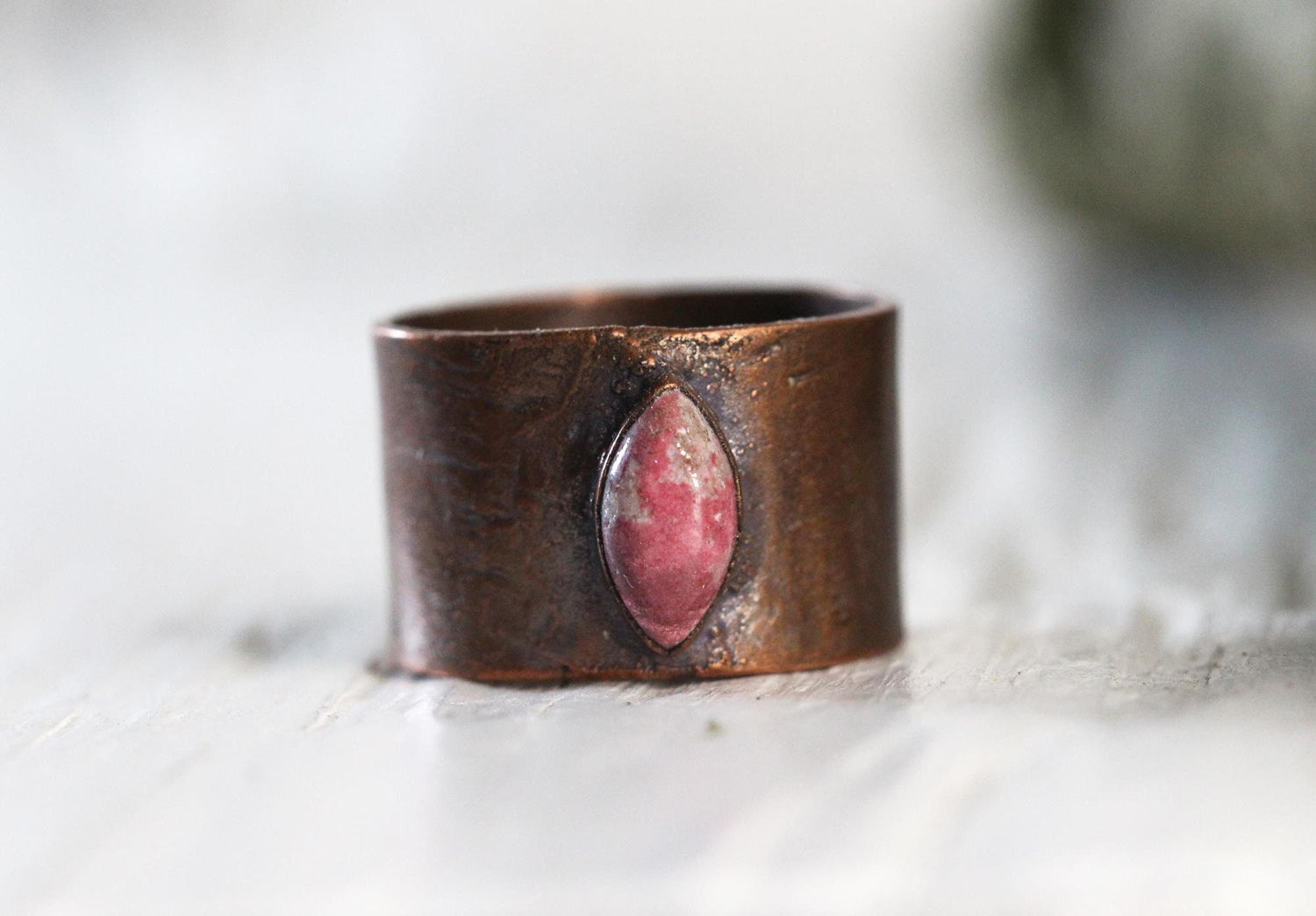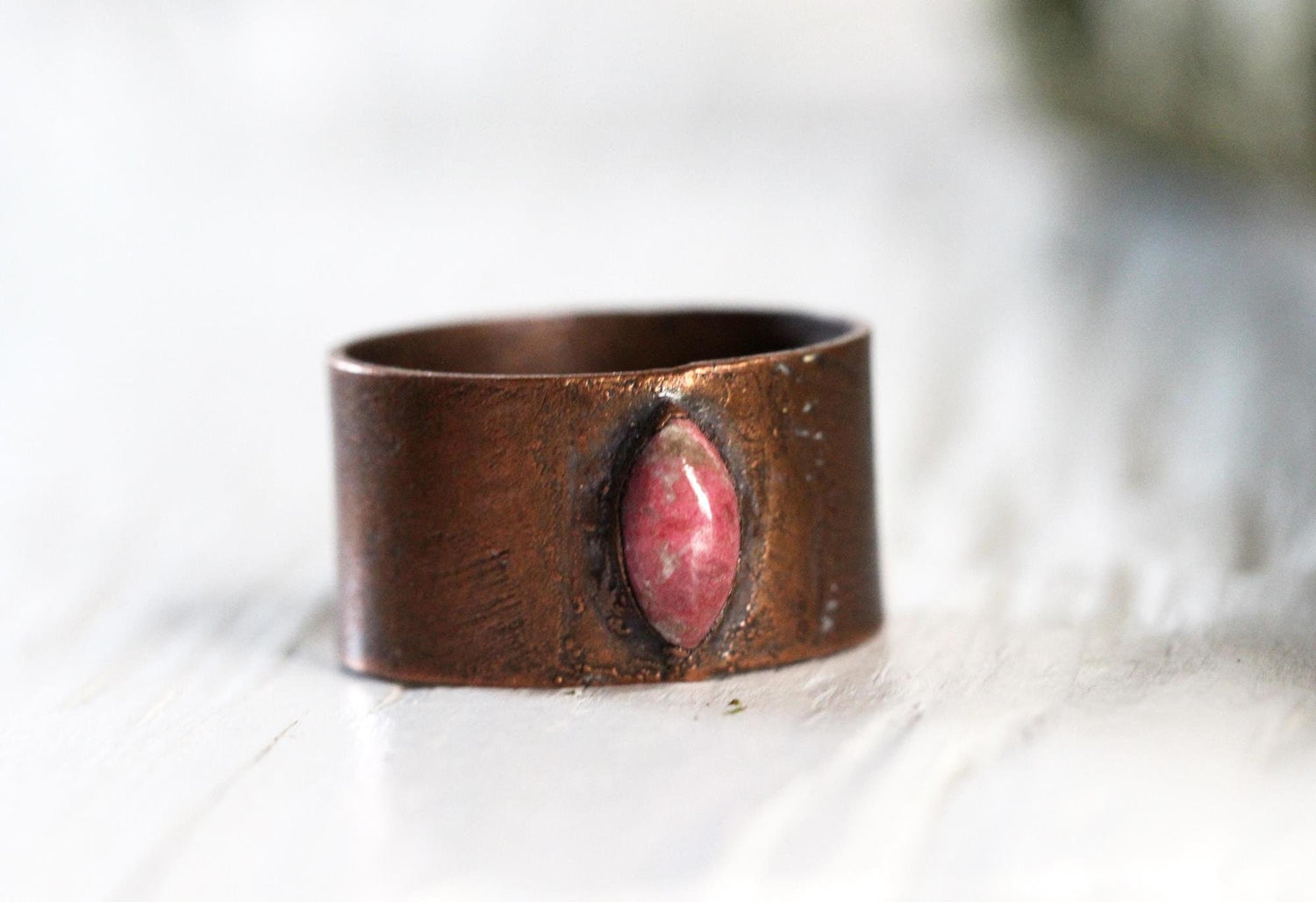 *ATTENTION US CUSTOMERS, THIS SHIPS TARIFF FREE* Thulite set into a wide band in solid copper.
