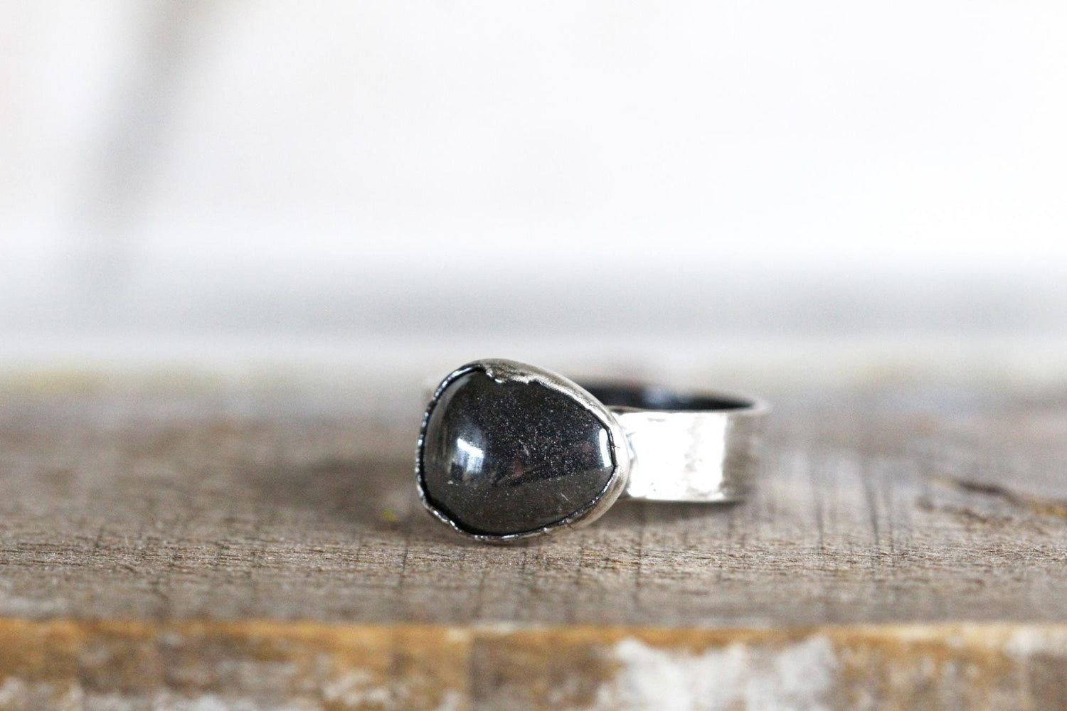 Tumbled Hematite Ring - Silver Grey Stone Ring - Men's Jewelry