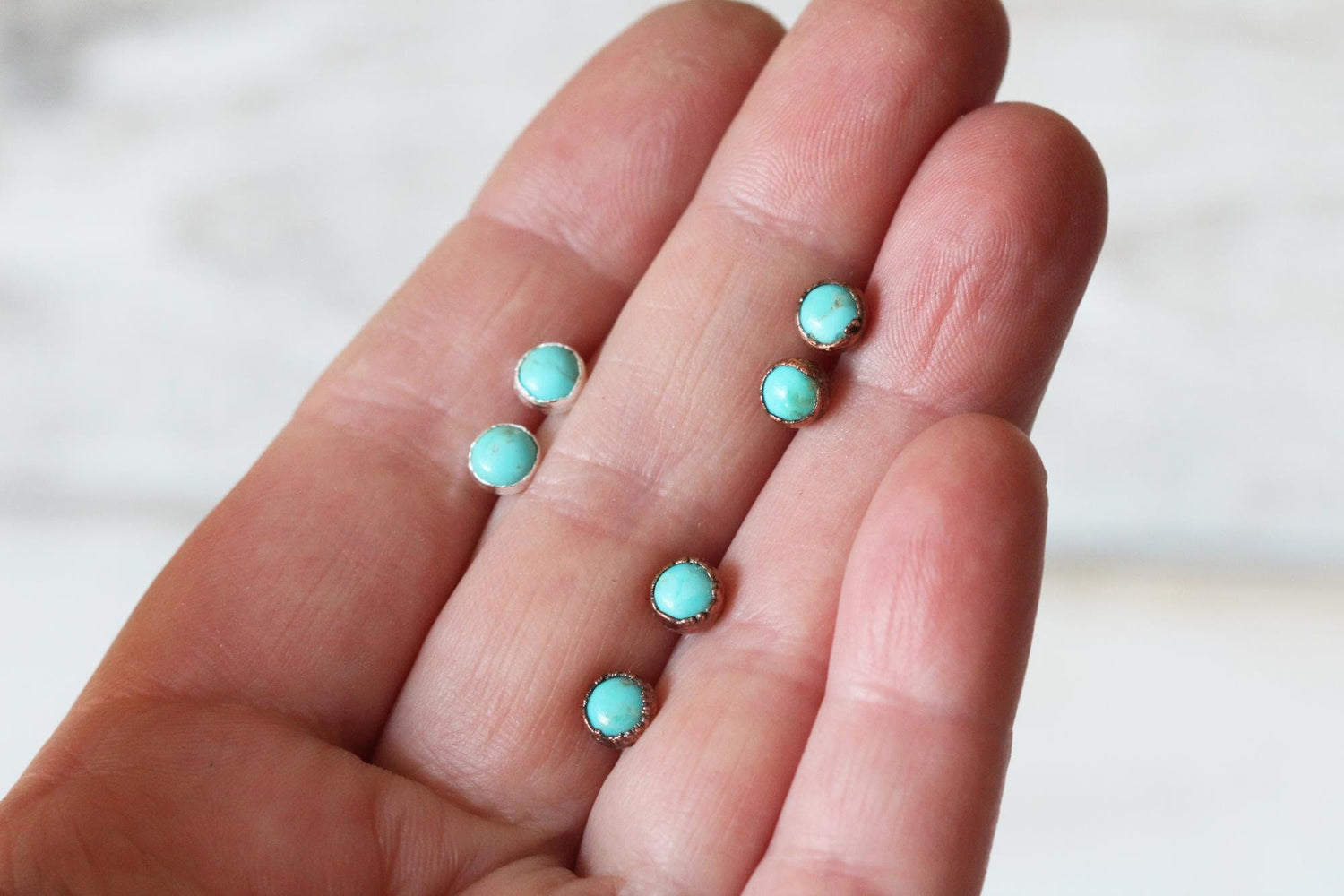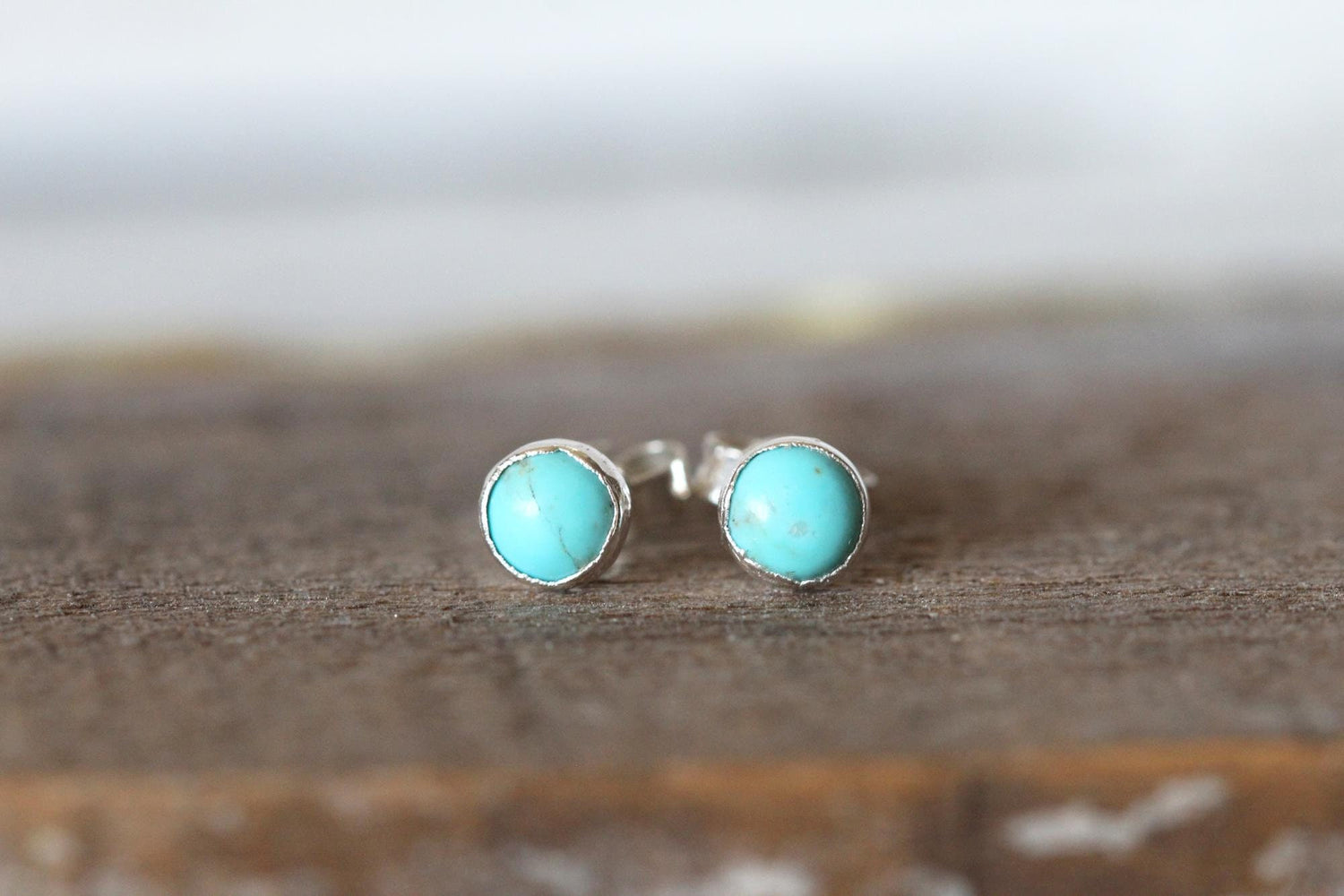 Turquoise Earrings - Natural Blue Stone Posts - Sterling Silver Studs