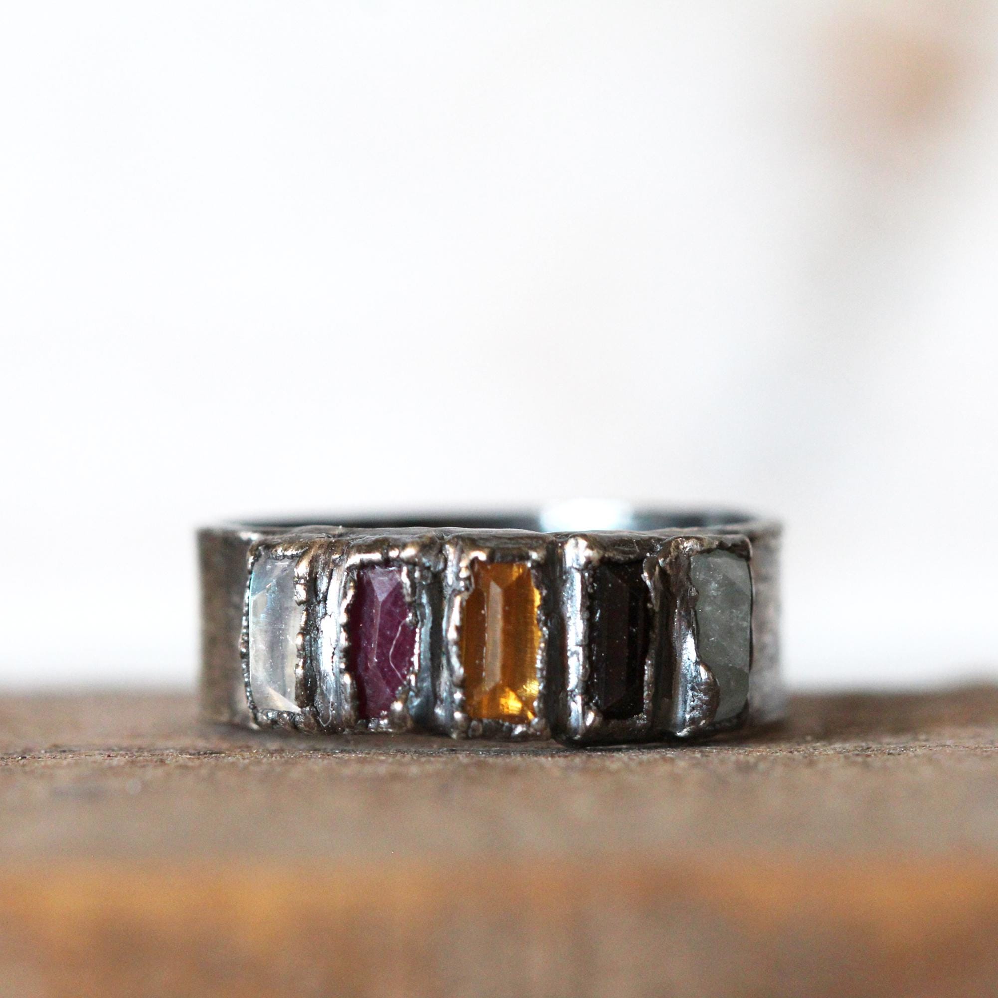 Custom Birthstone Ring - Personalized Unisex Family Ring - Multi Stone Crystal Ring - Mother's Day Ring