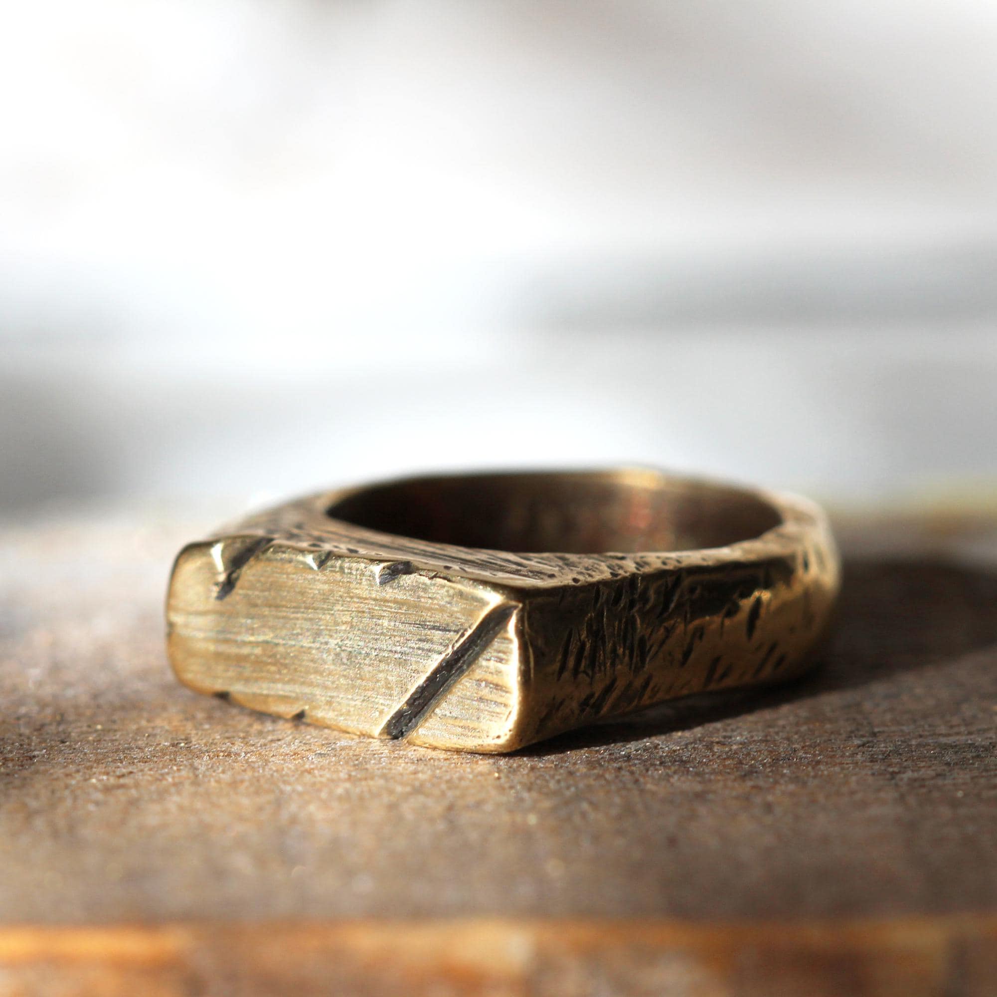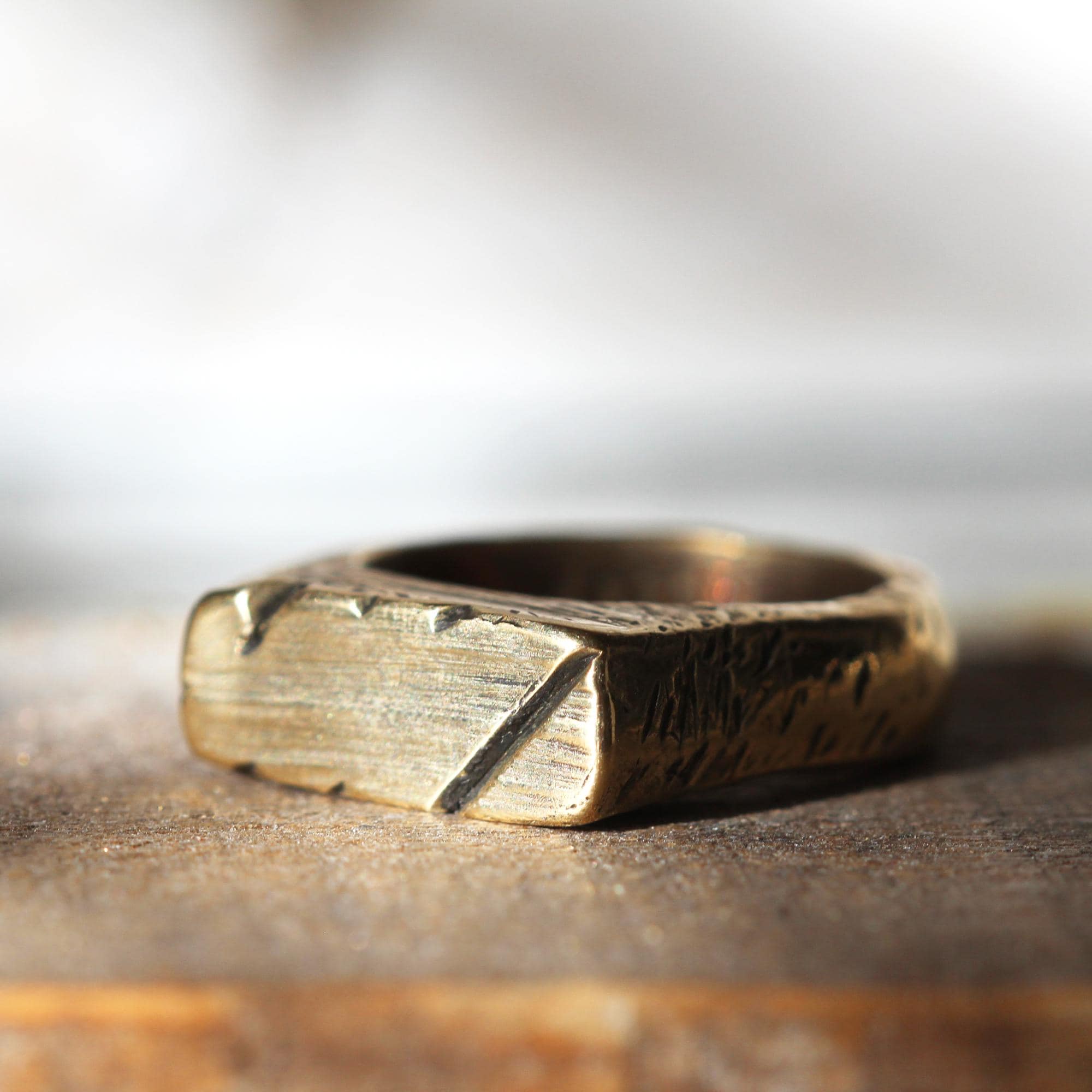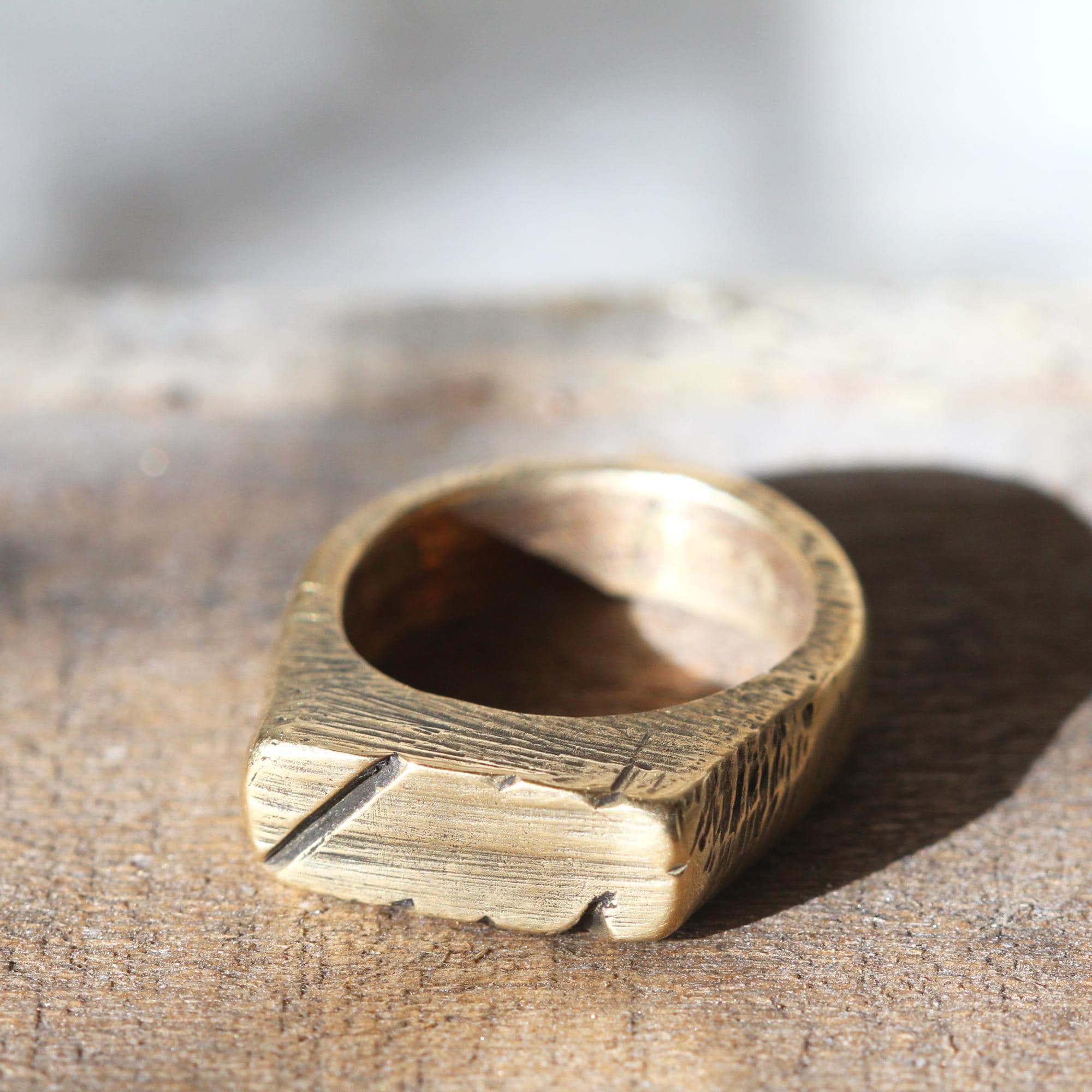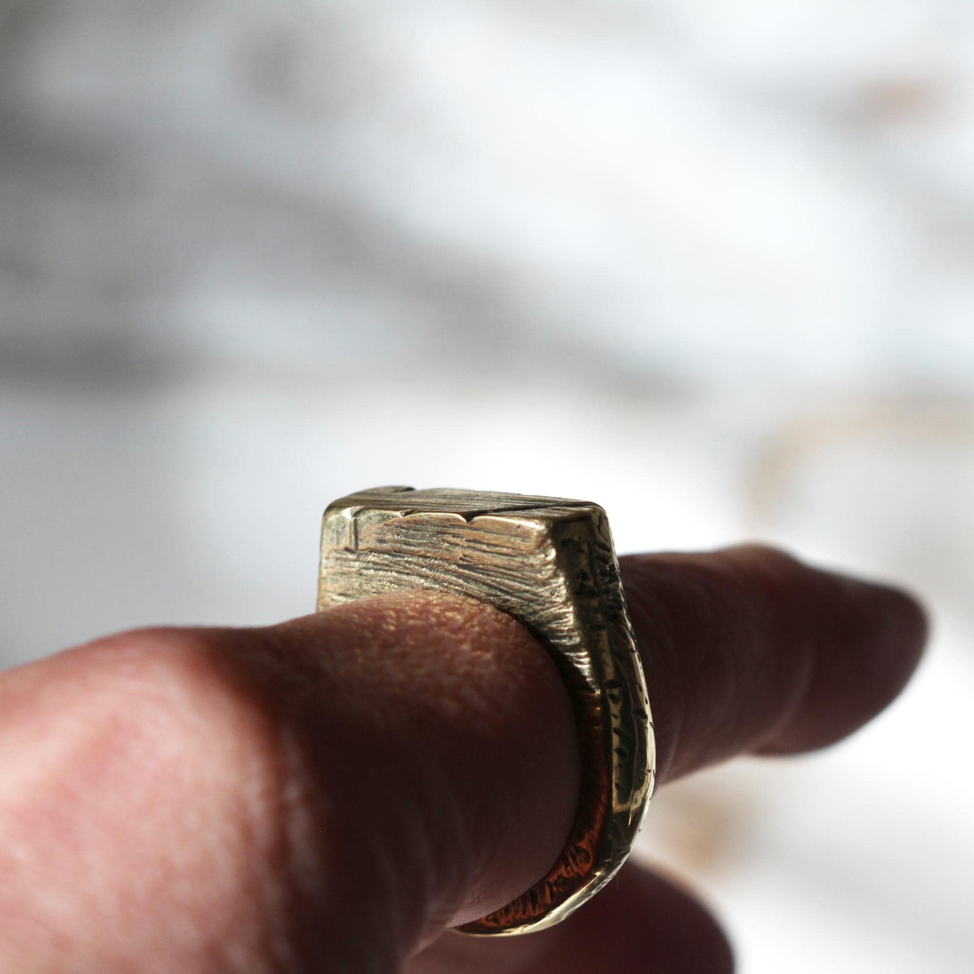 Men's Bronze Ring - Size 11 - Hand Carved Signet Ring - Lost Wax Casted
