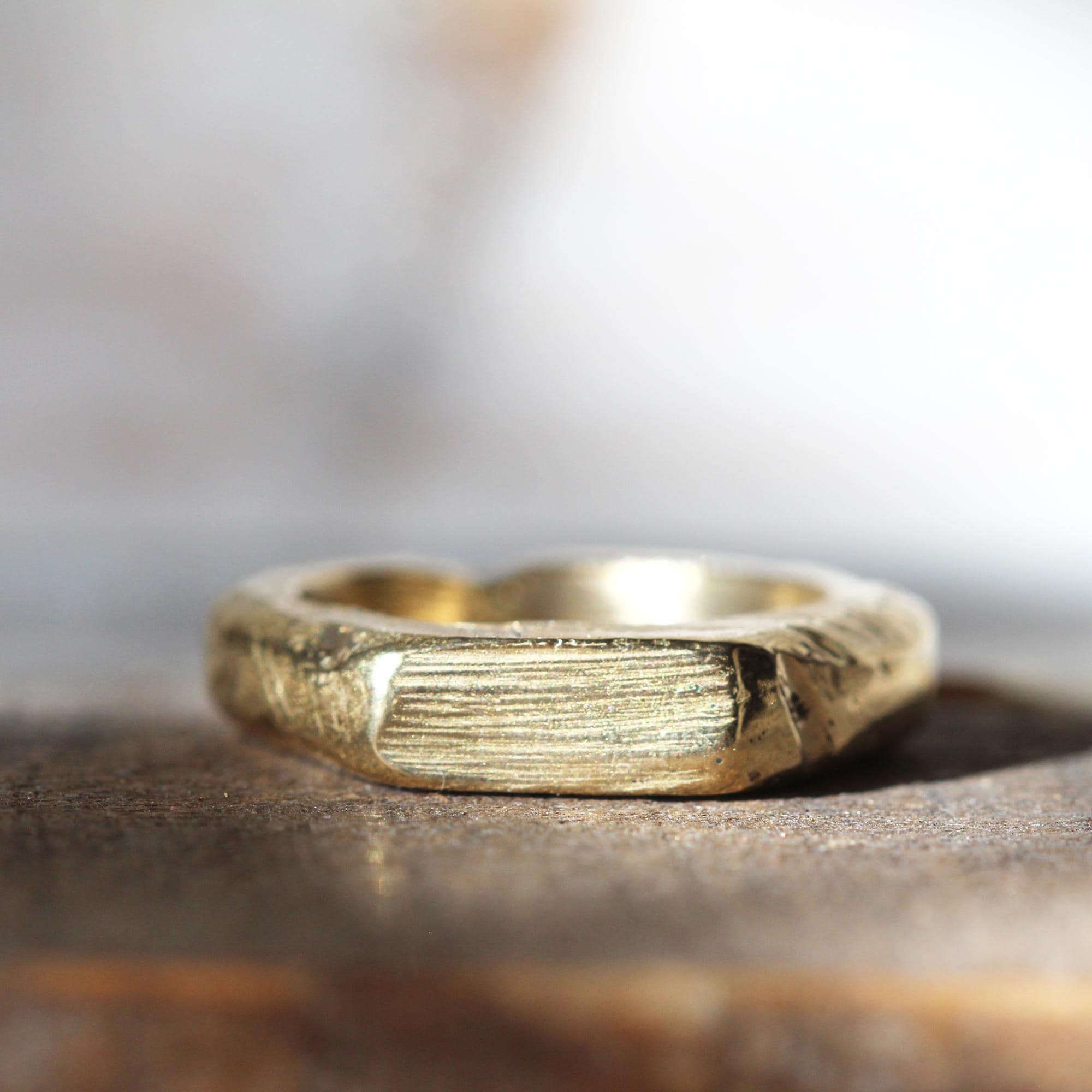 Men's Bronze Ring - Size 11 - Hand Carved Signet Ring - Heavy Metal Ring