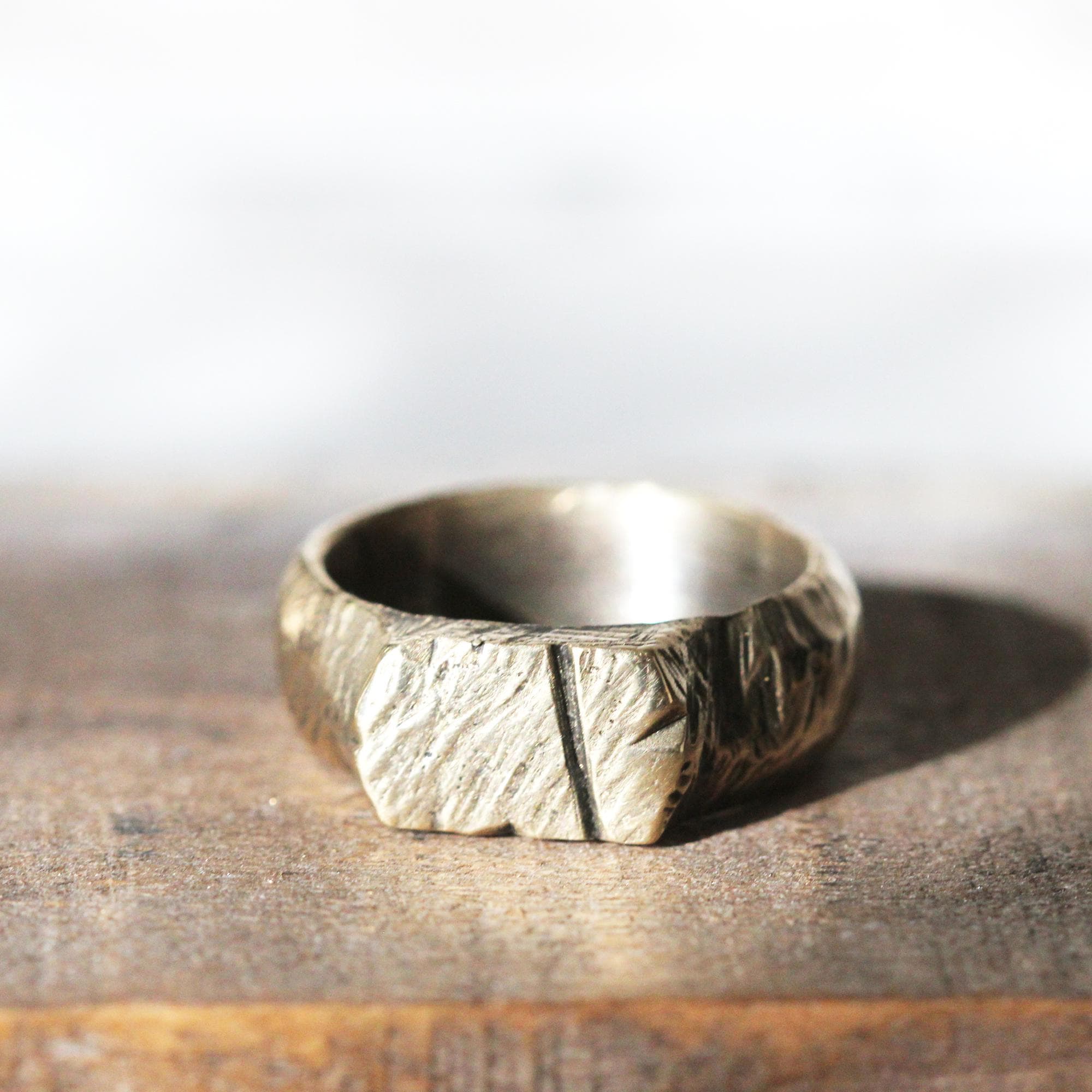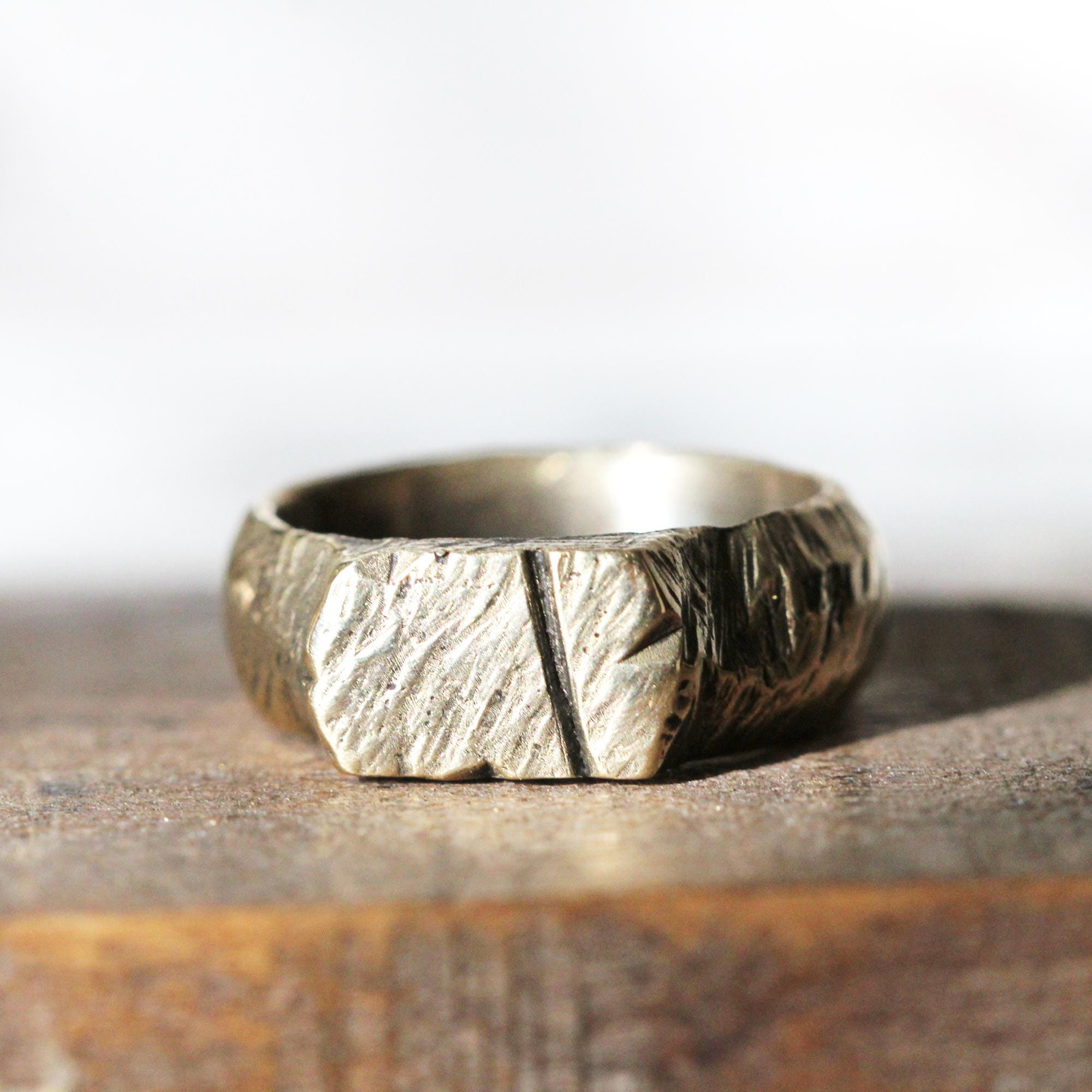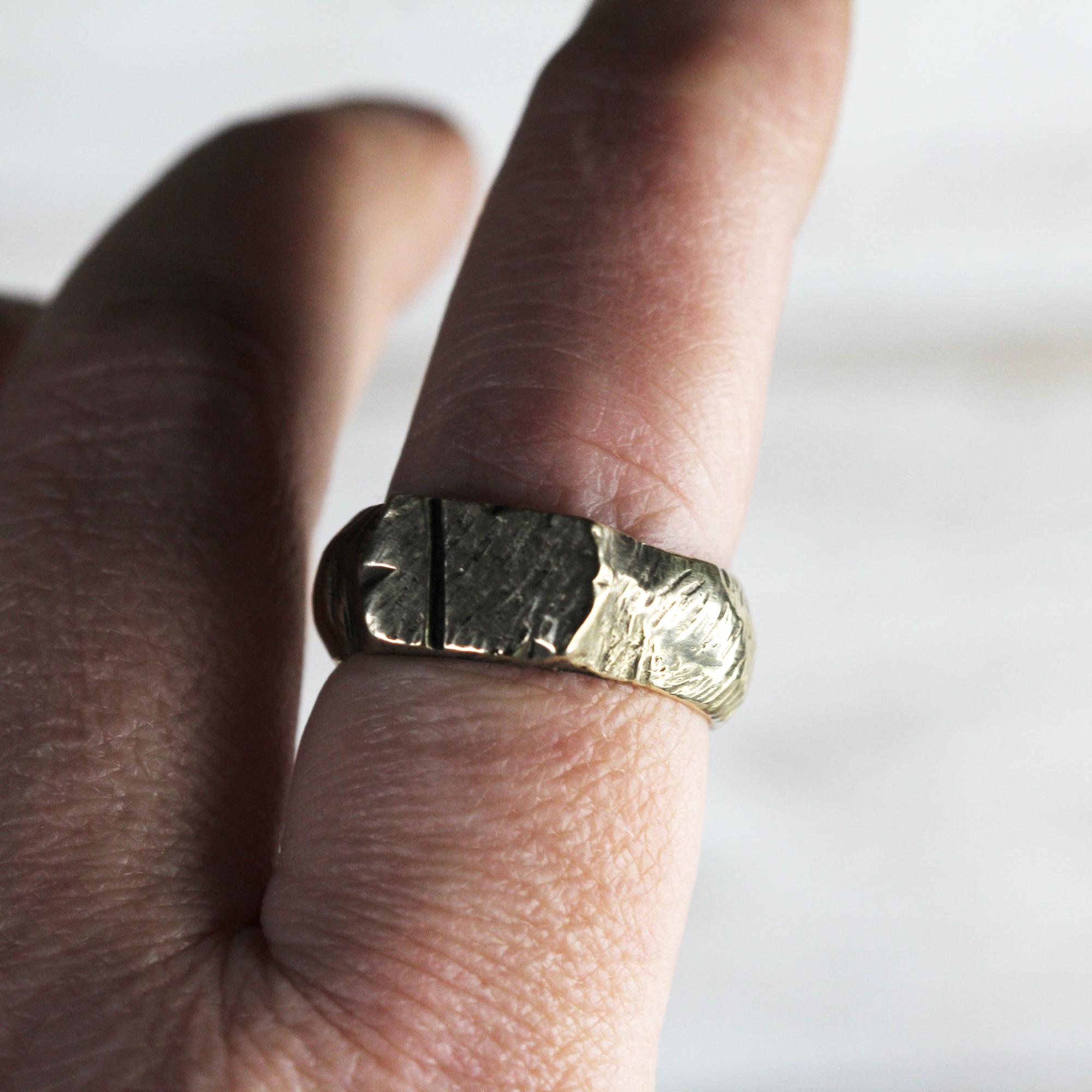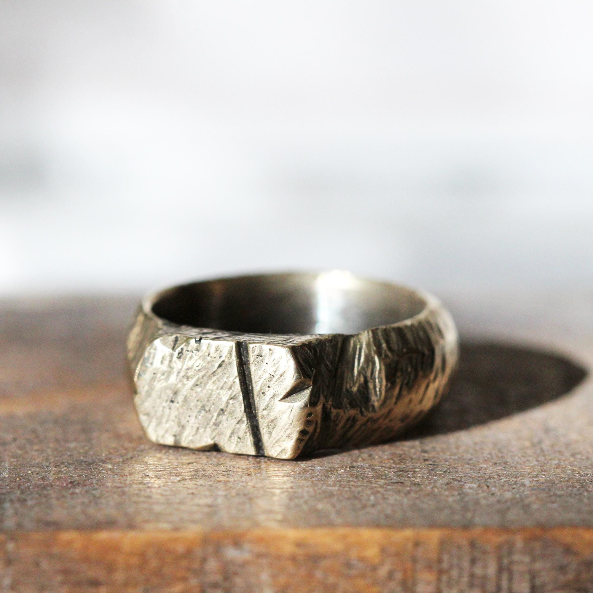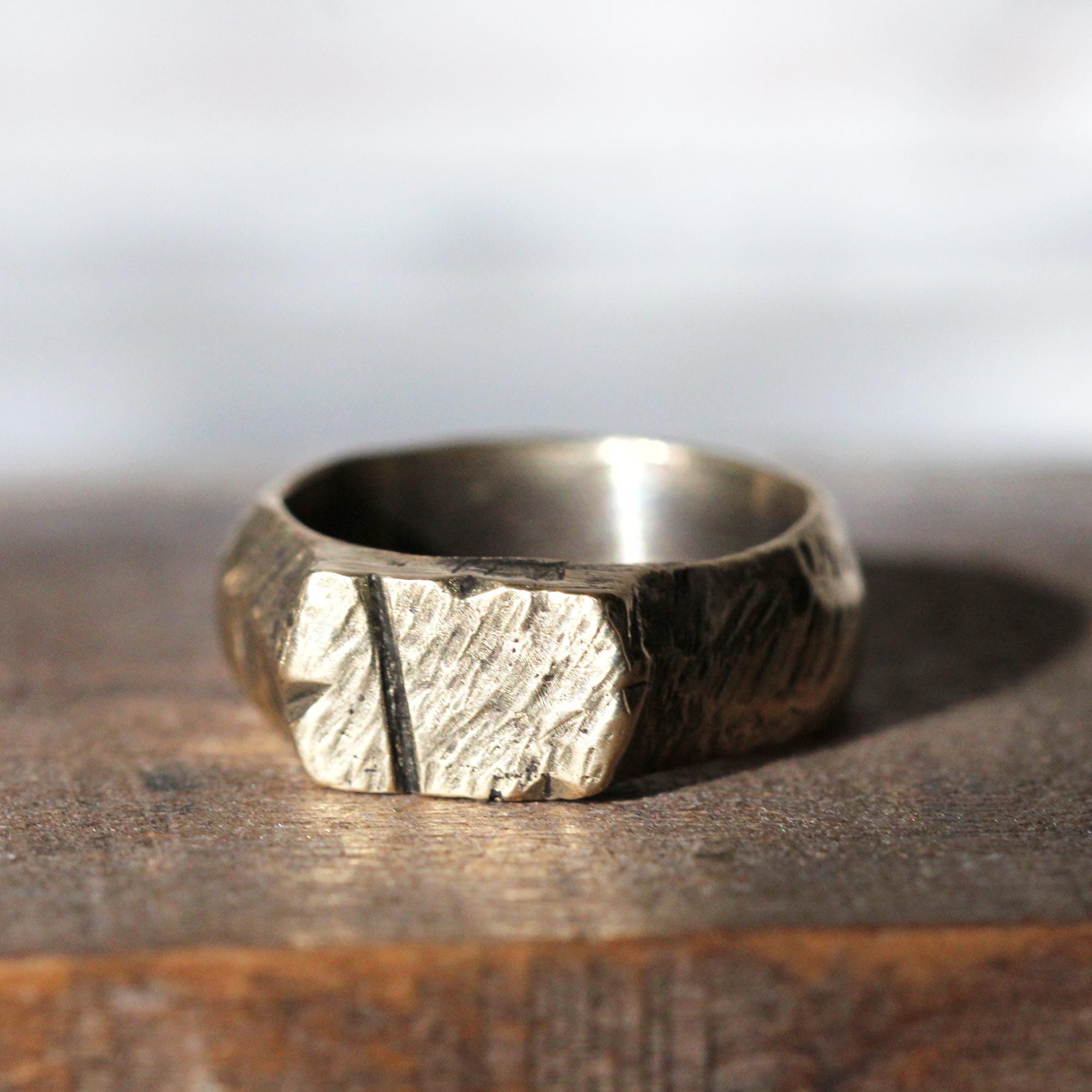 Men's Bronze Ring - Size 10 1/2 - Hand Carved Signet Ring - Brutalist Ring