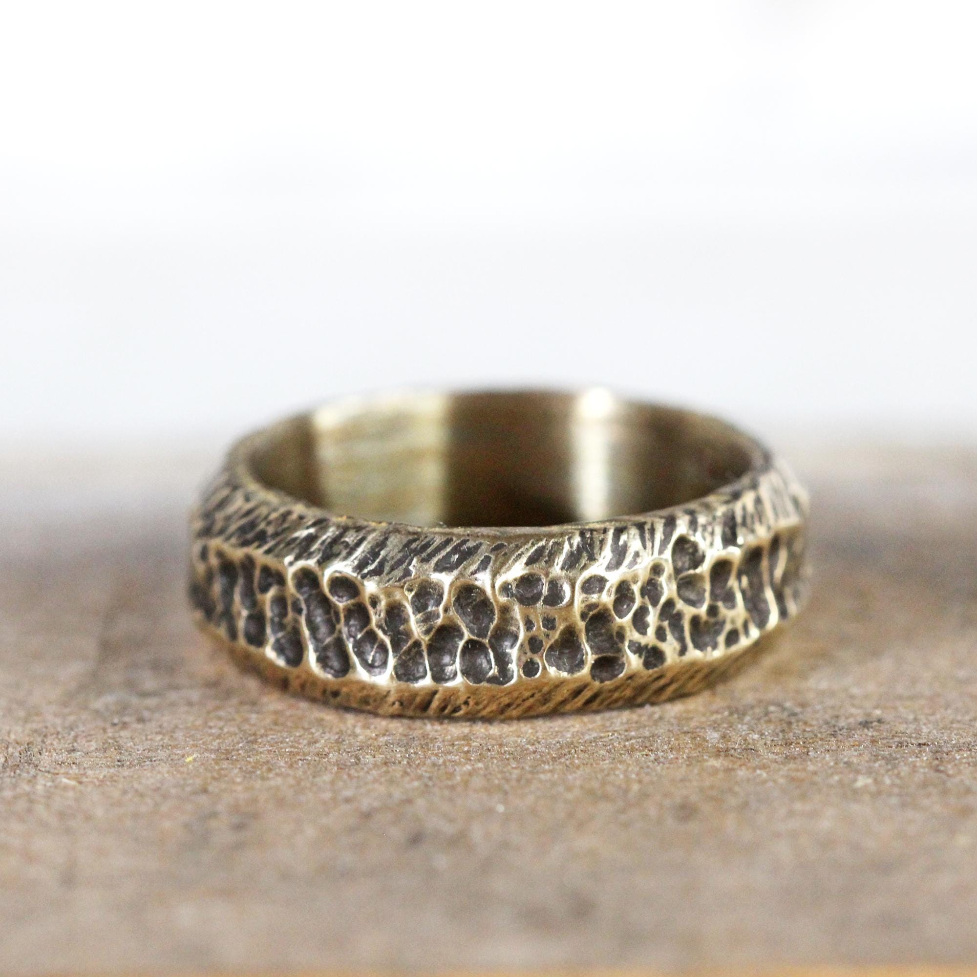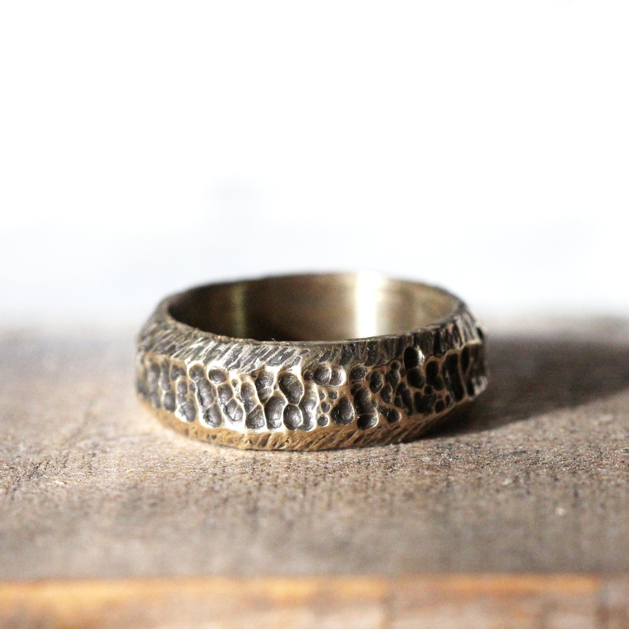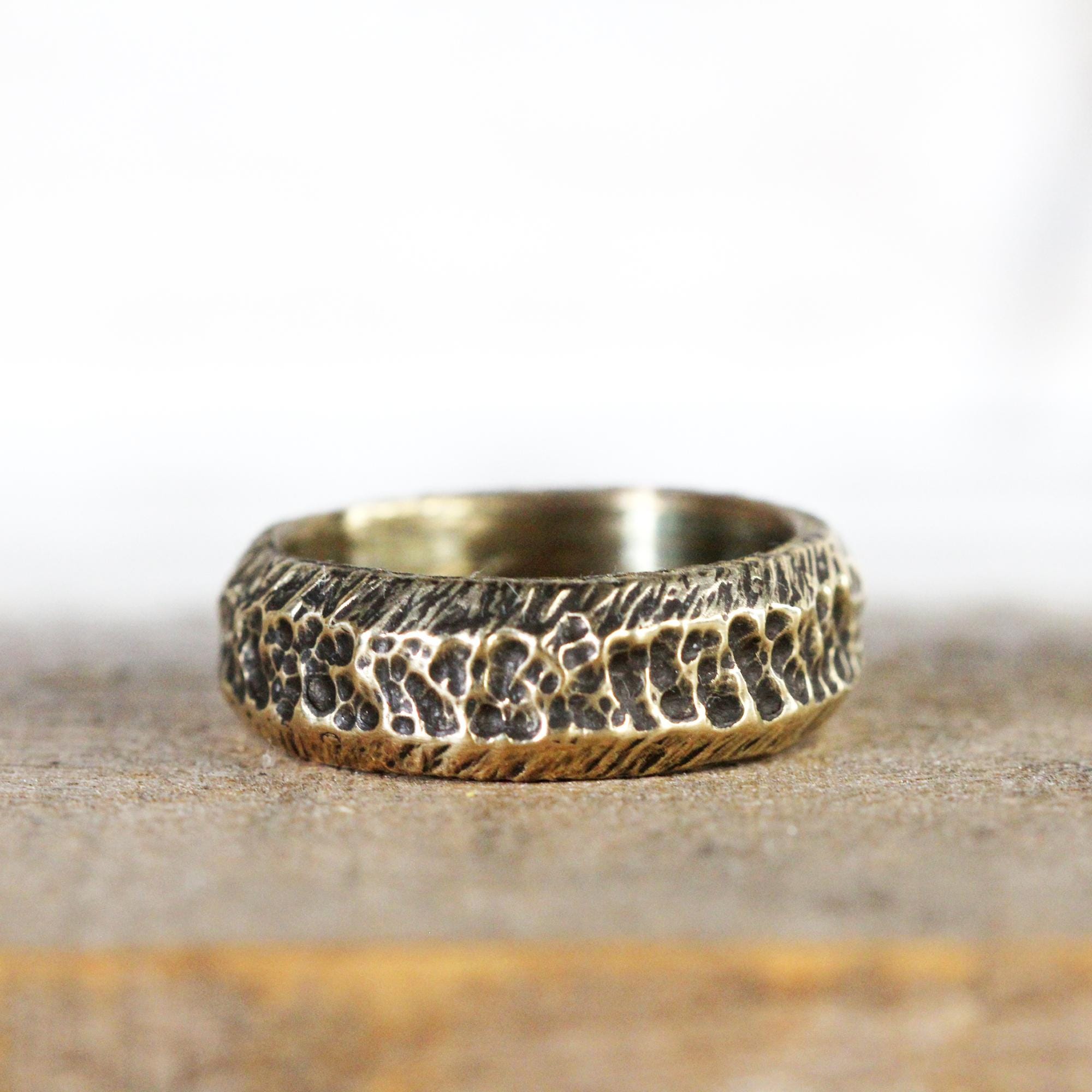 Men's Bronze Ring - Size 10 1/2 - Hand Carved Rustic Ring - Patterned Band