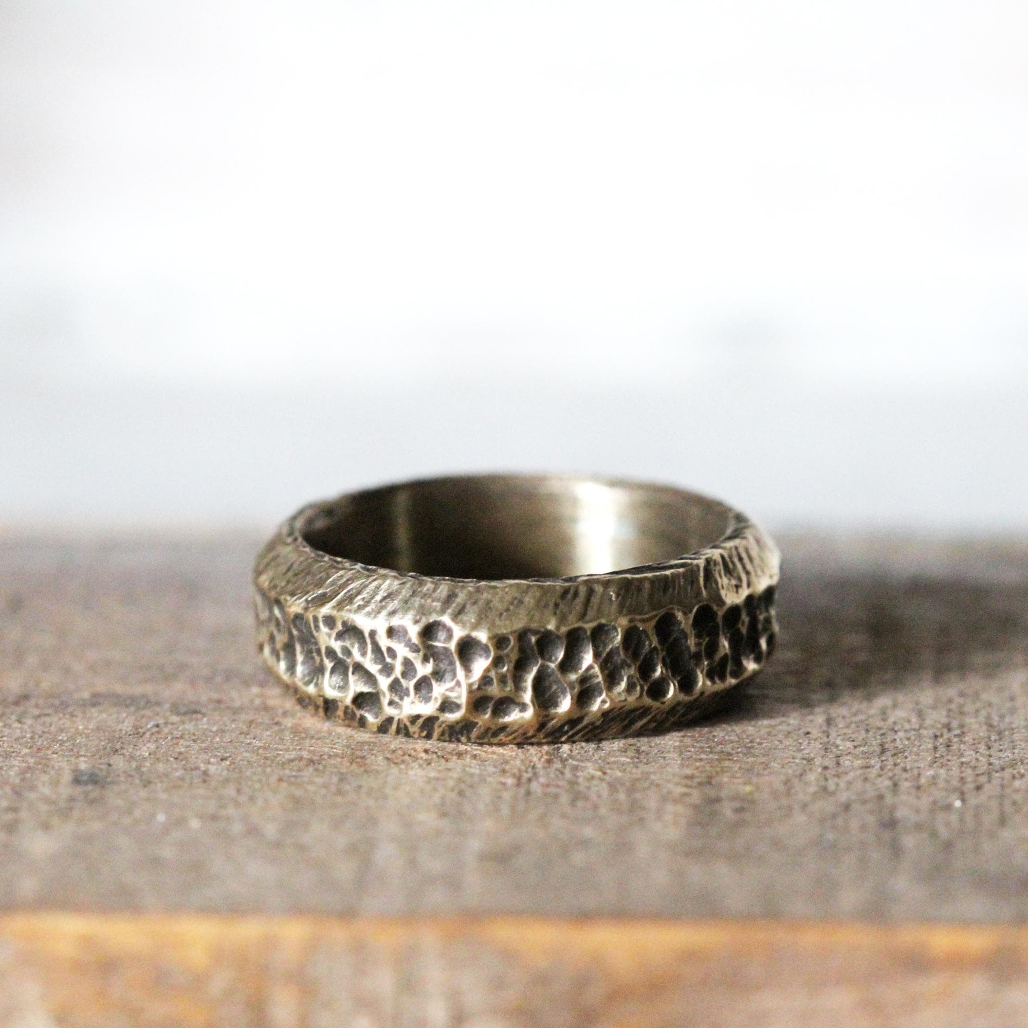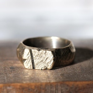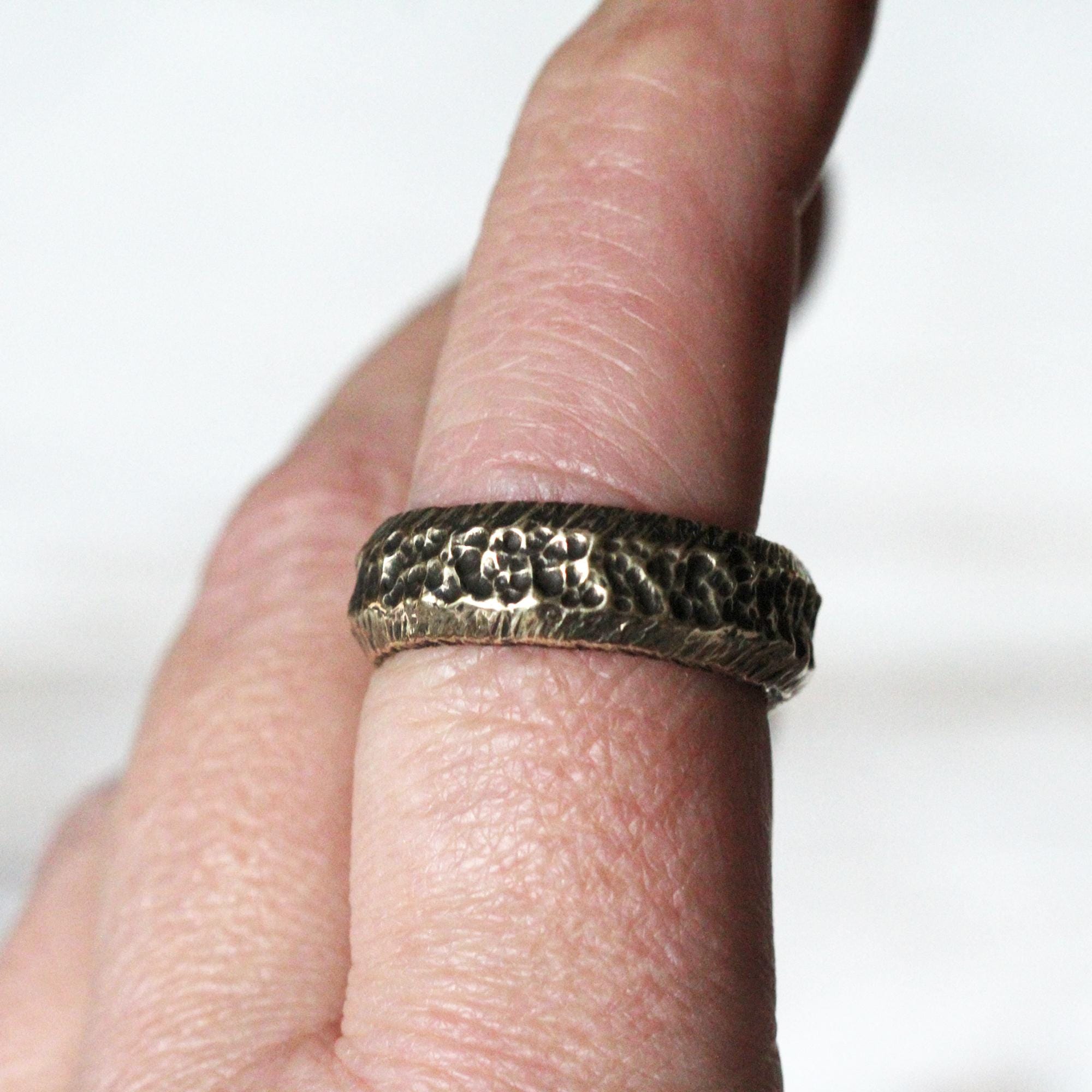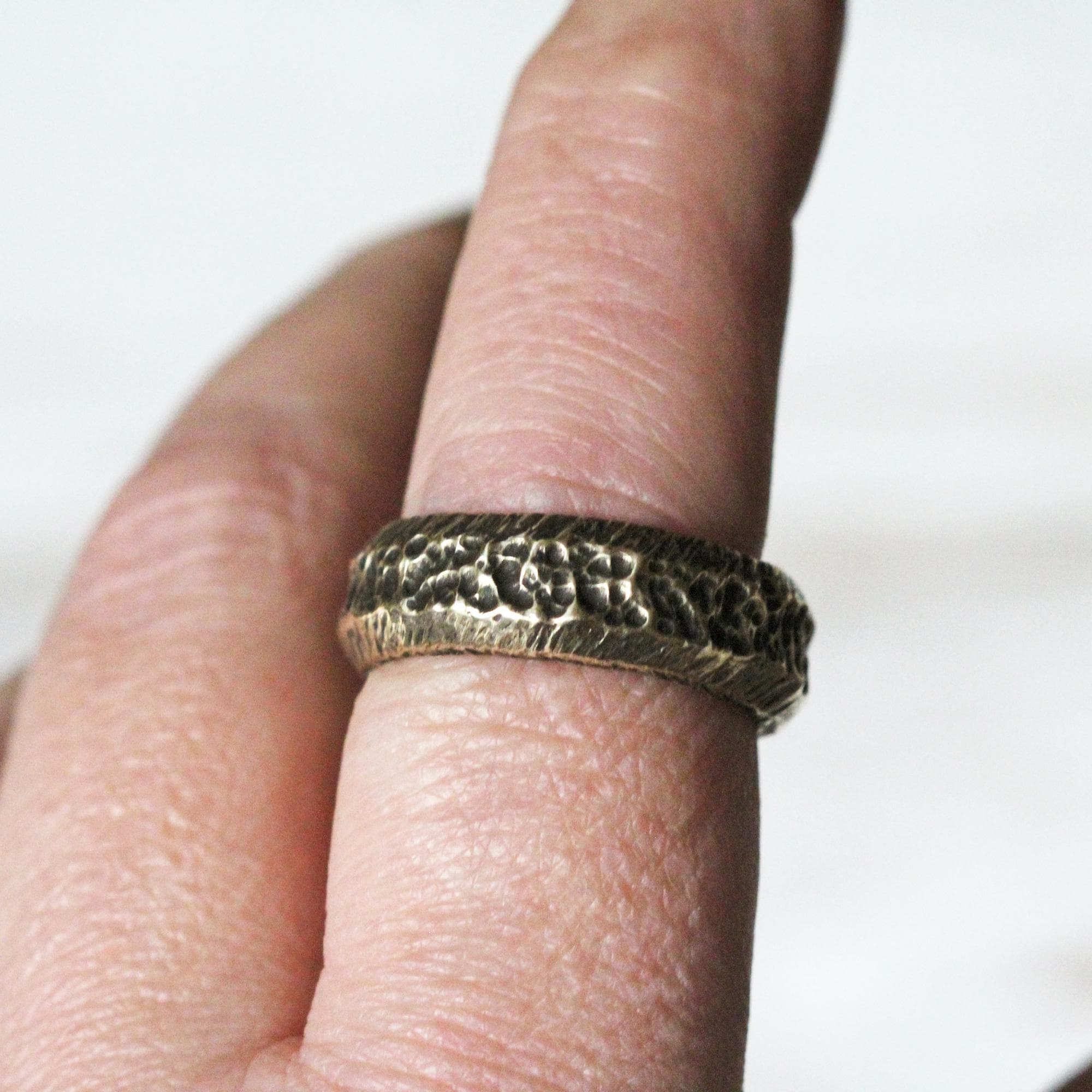 Men's Bronze Ring - Size 10 1/2 - Hand Carved Rustic Ring - Patterned Band