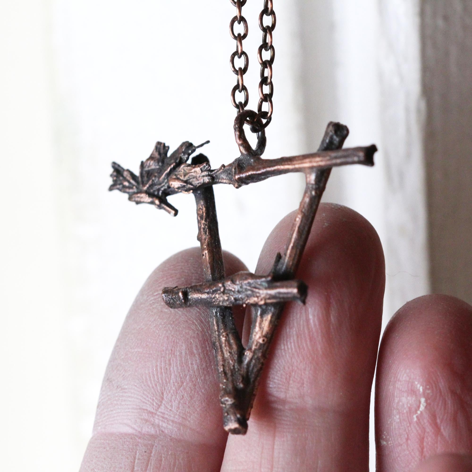 Branches electroformed in the symbol of earth with a sprig of heather - pendant length is approximately 1 1/2 inches.