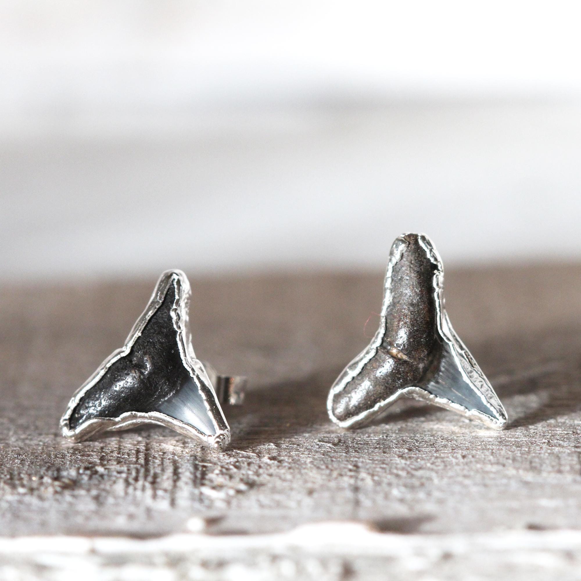 Shark Tooth Stud Earrings - Sterling Silver Earrings - Ocean Lover Gift