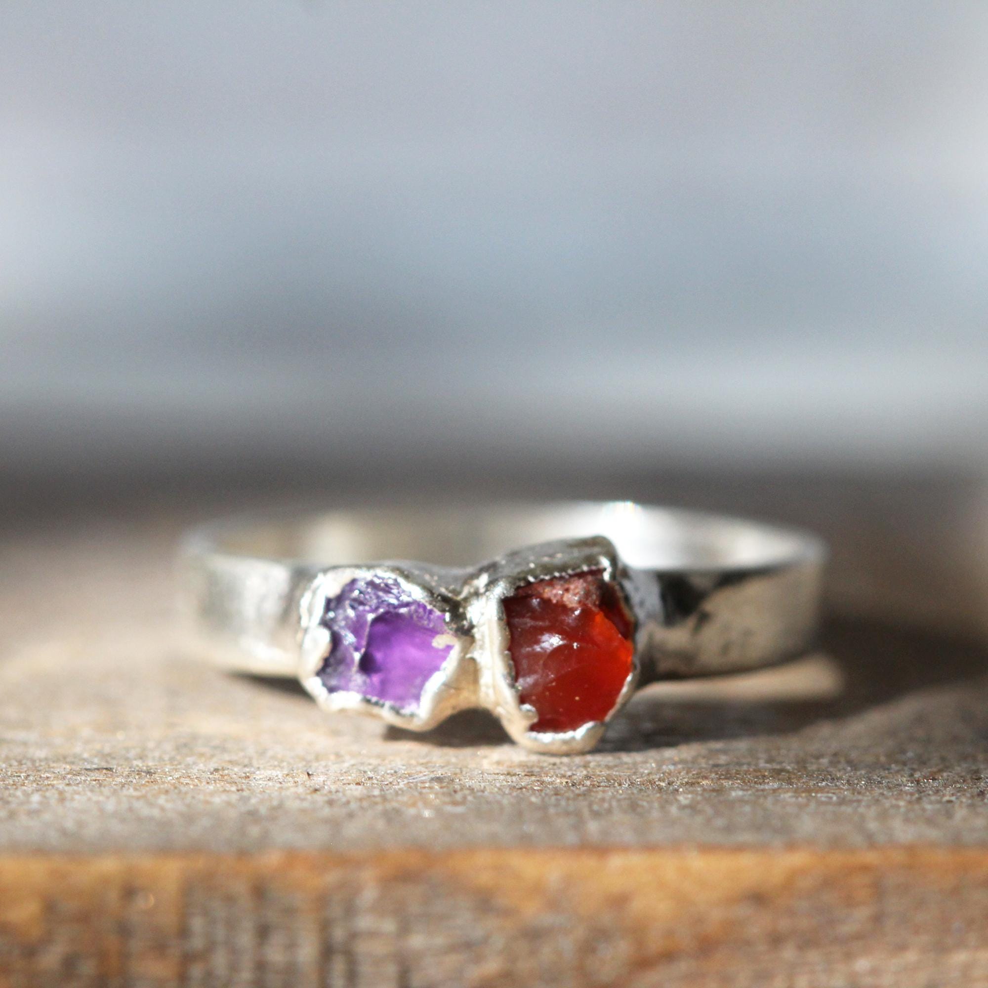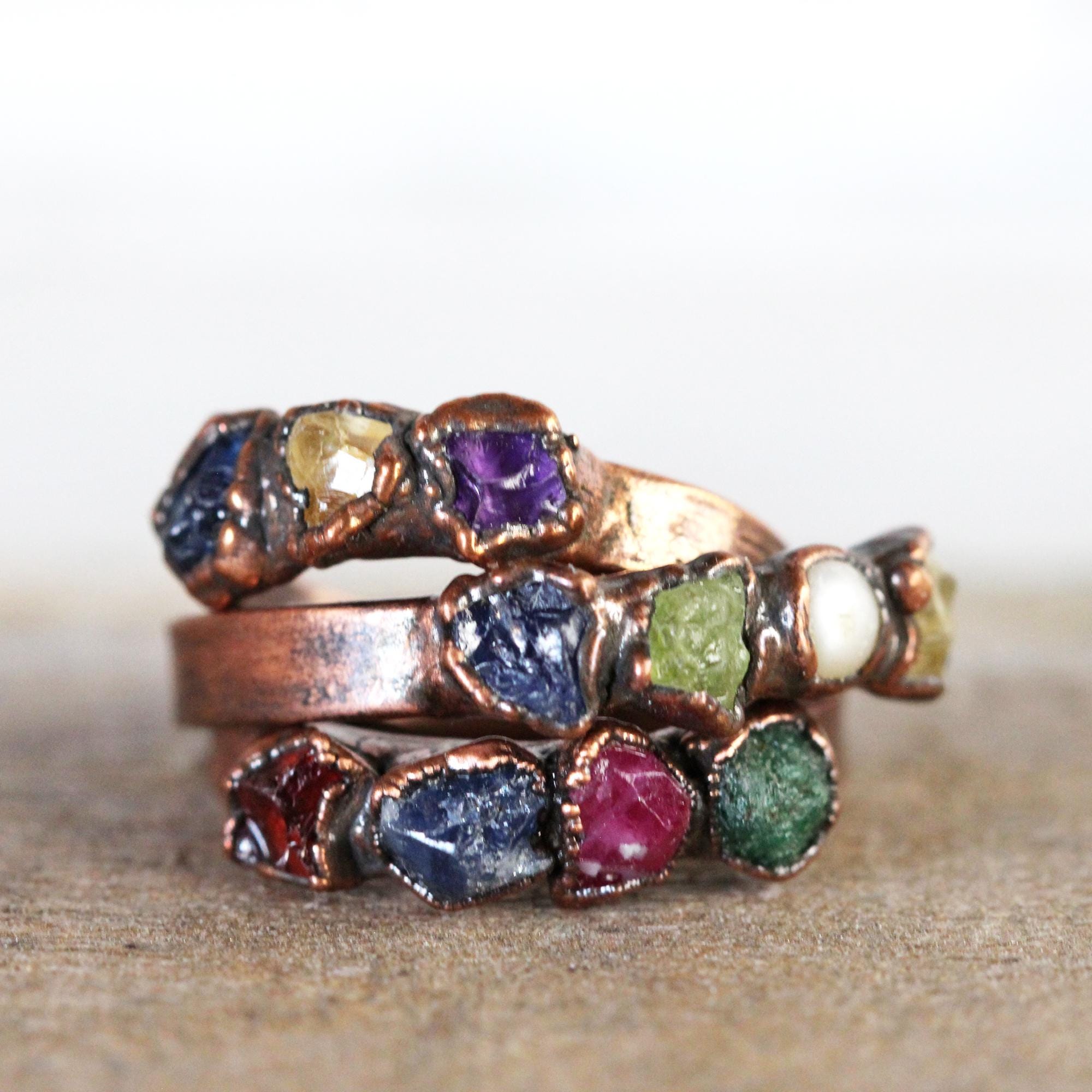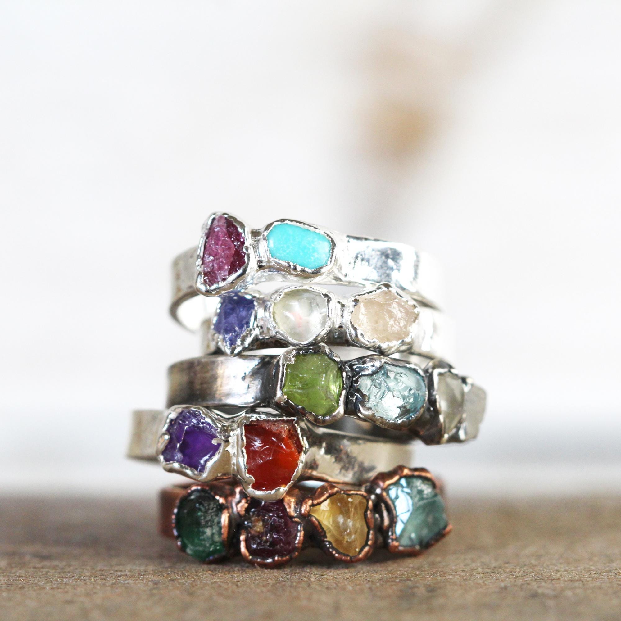 Raw Birthstone Ring - Personalized Gift for Mom - Multi Stone Crystal Ring - Mother's Day Ring