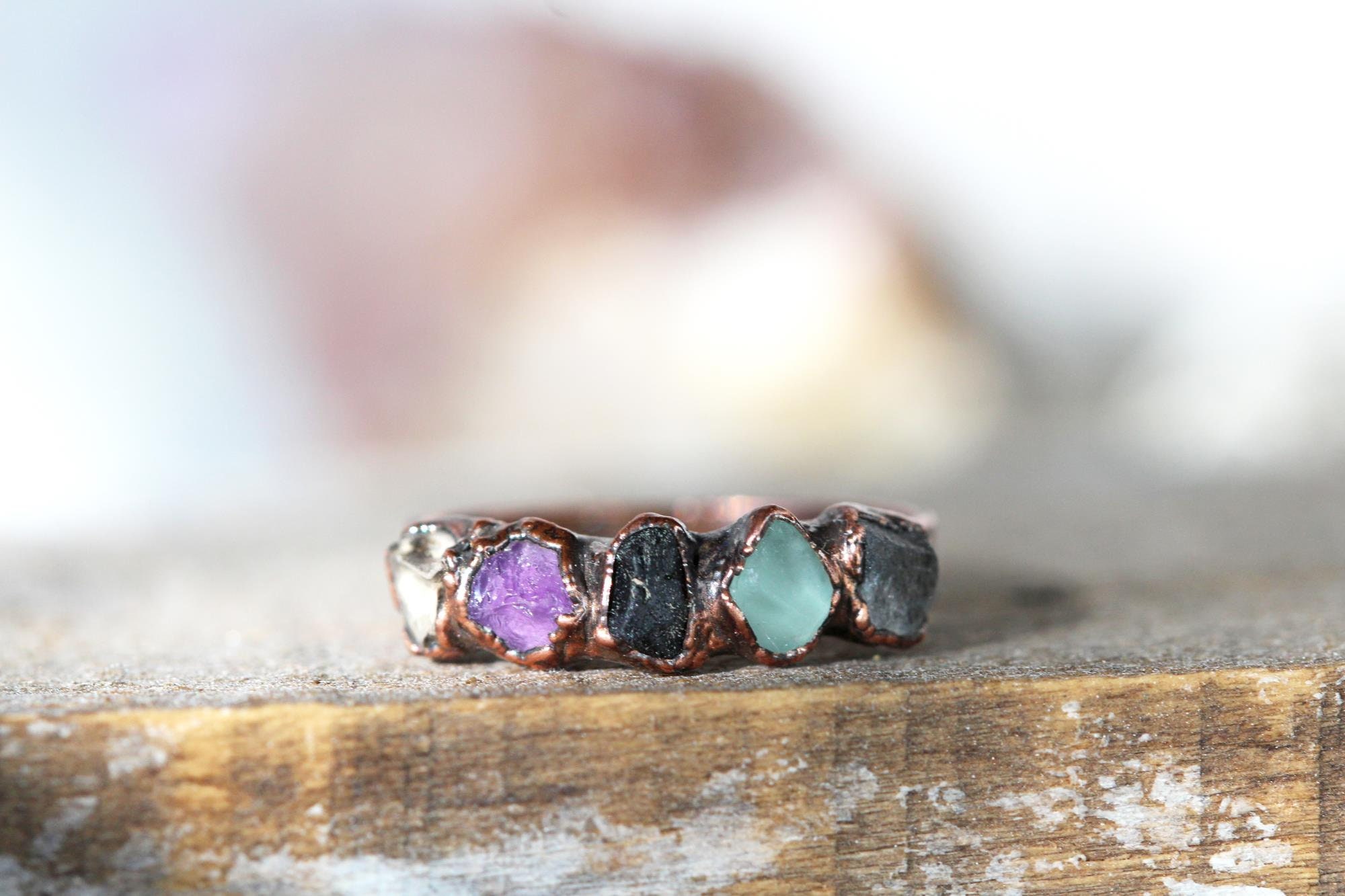 Protection Stone Ring - Stone Amulet Ring - Multi Stone Crystal and Copper Ring - Witch Ring